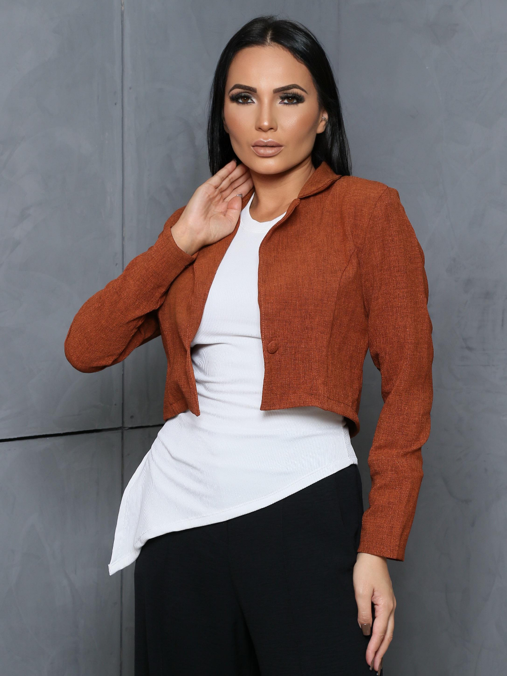 Blazer Curto Linhão Rústico, Botão Encapado