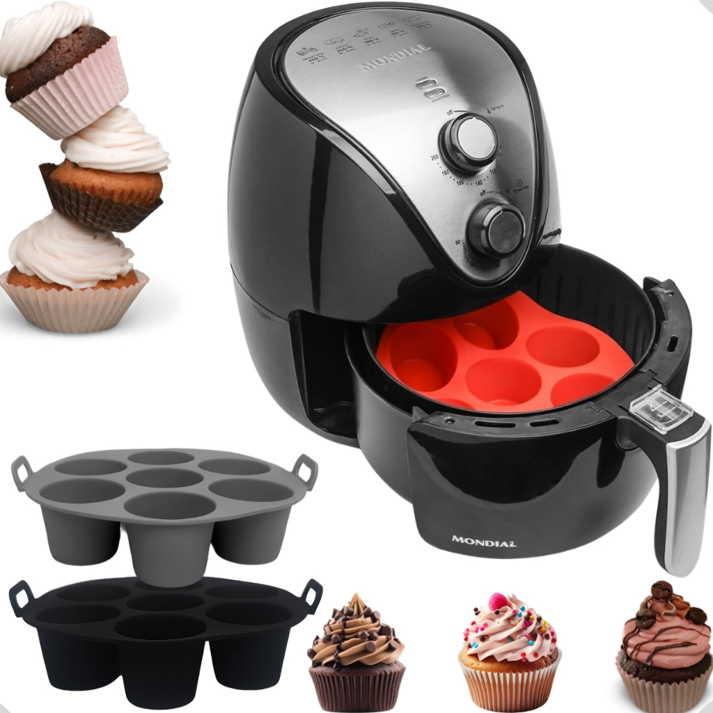 Kit 5 Forma Forro Silicone Tapete Protetor Cupcake Air Fryer Forno Microondas Antiaderente