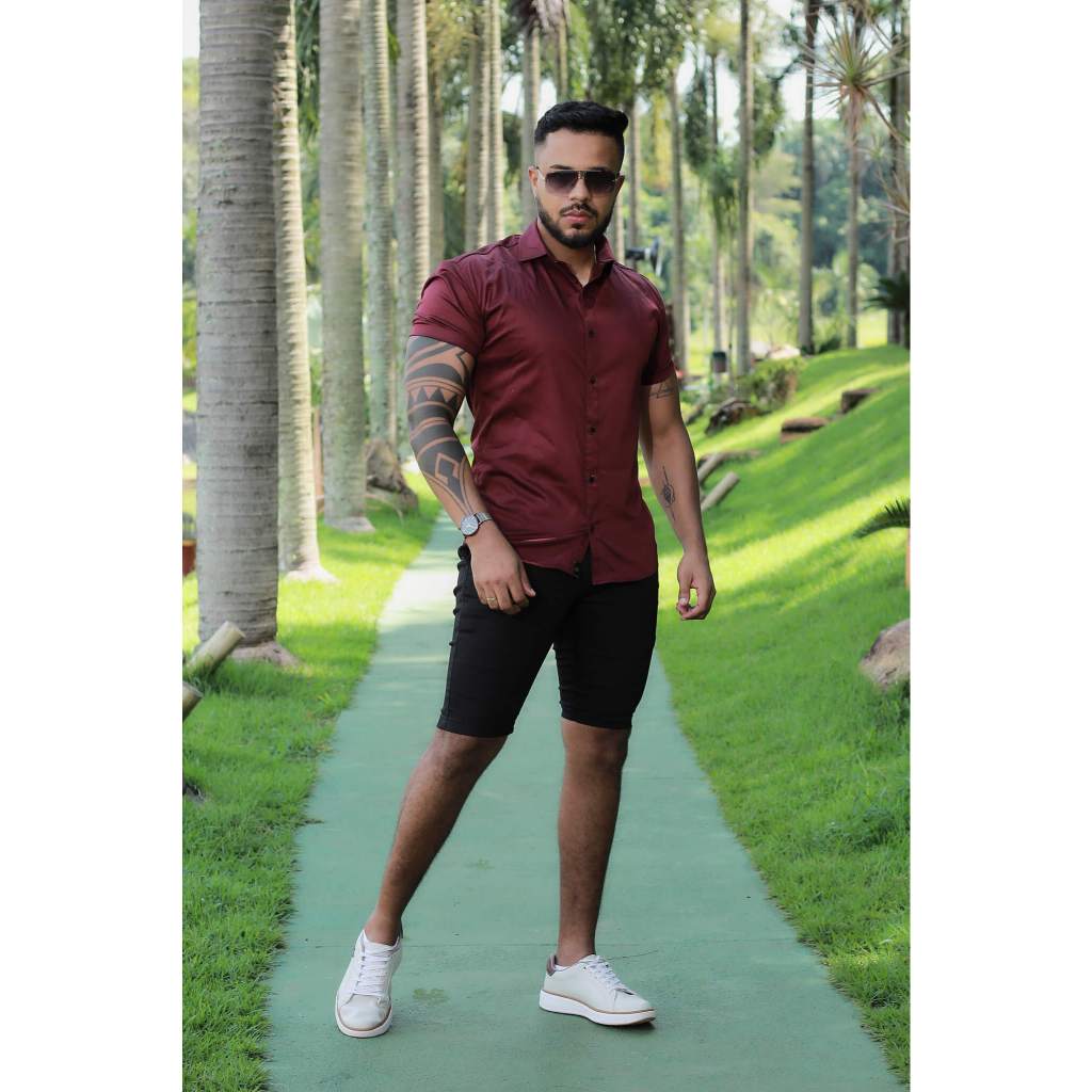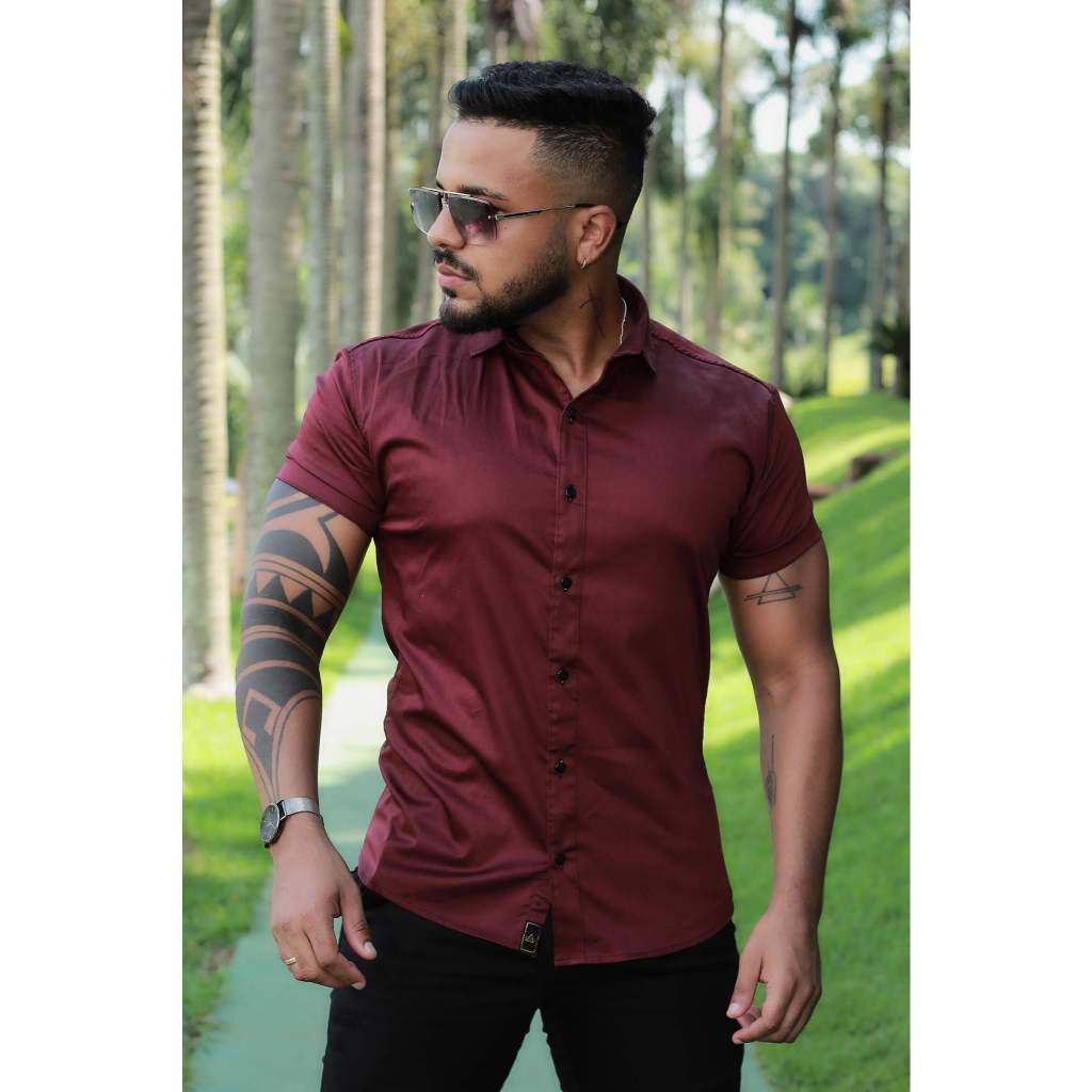 Camisa Slim fit Marsala com elastano