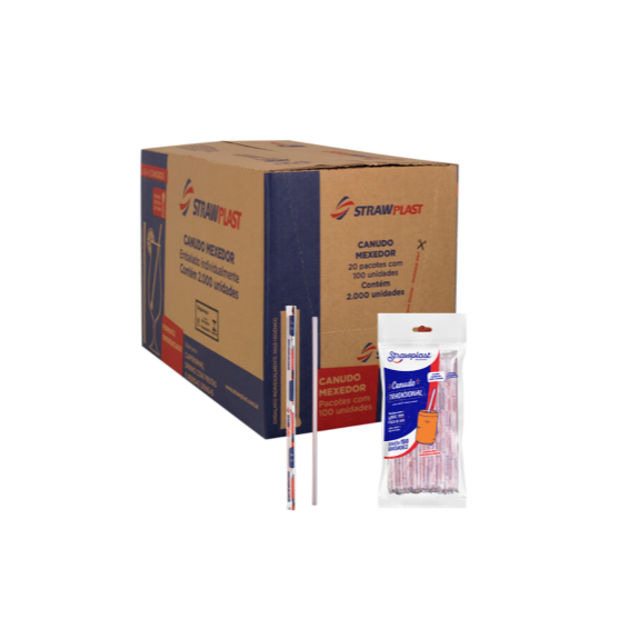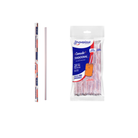 Canudo Plástico Tradicional Strawplast c/ Sachê Individual 100 Unidades P/ Suco, Refrigerante Drinks