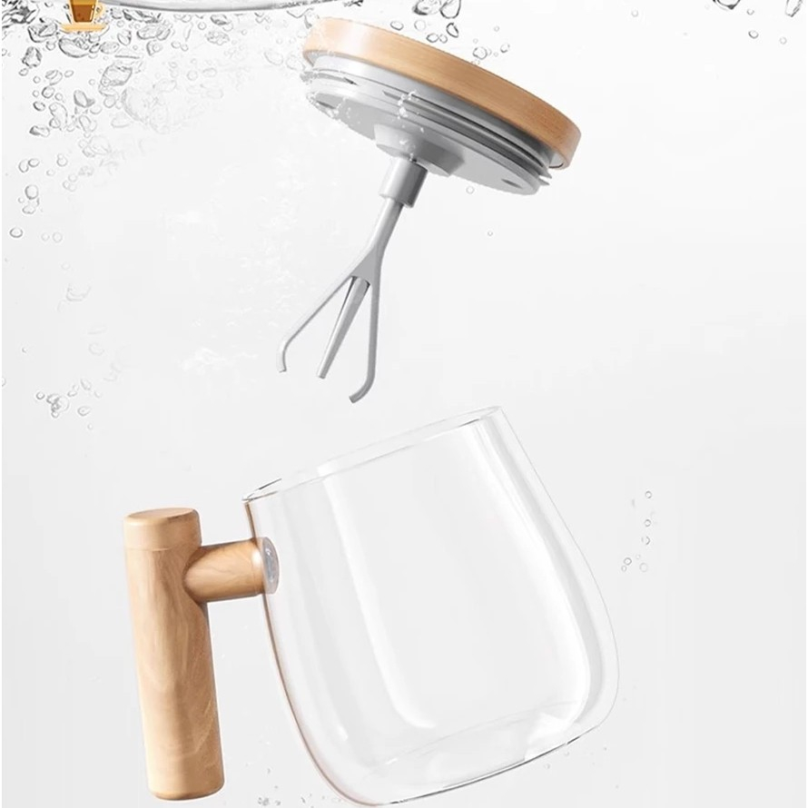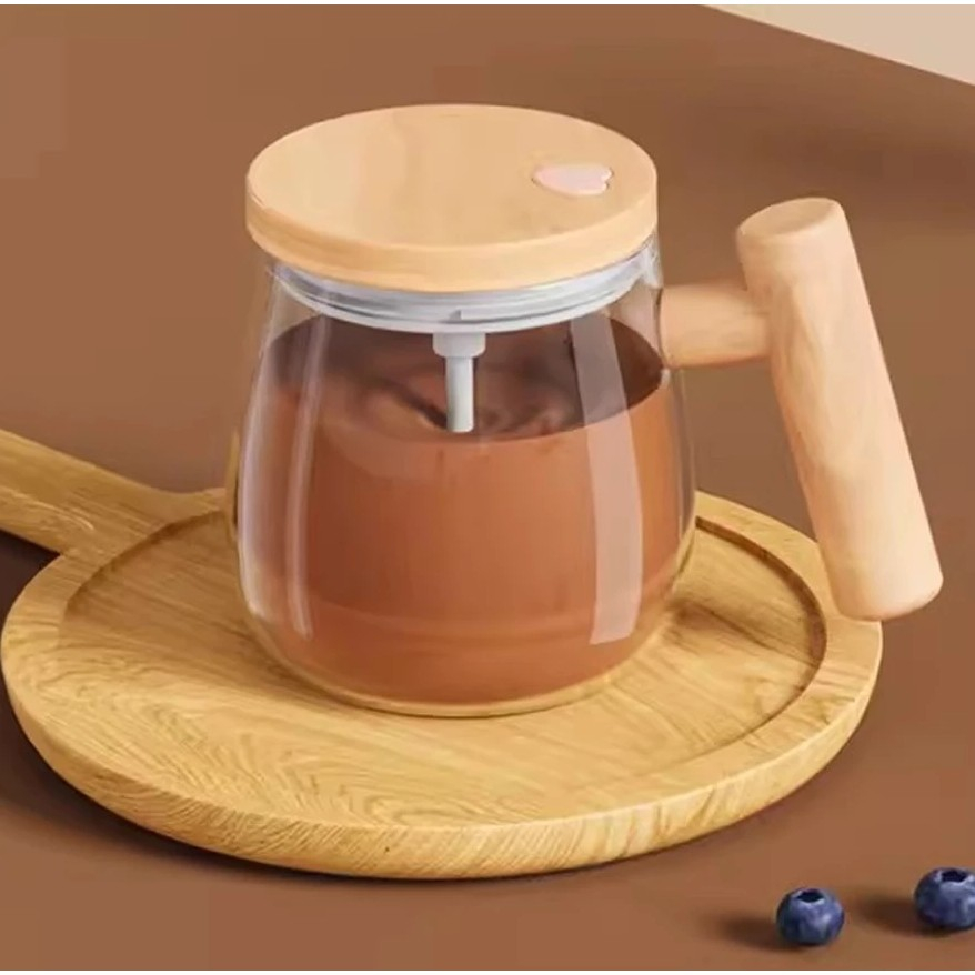 Caneca Auto Agitadora De Café Com Cabo De Madeira 400ml Elétrica 7000rpm Alta Velocidade Vidro