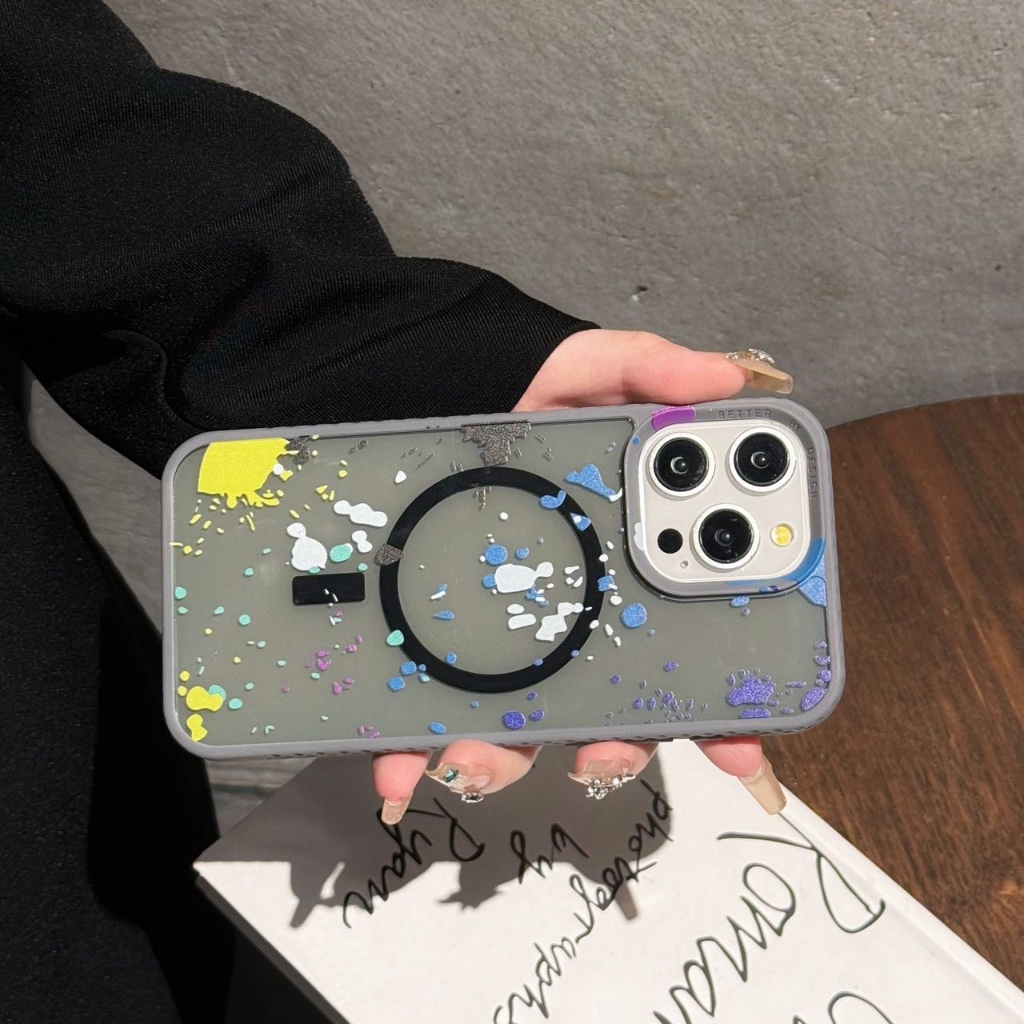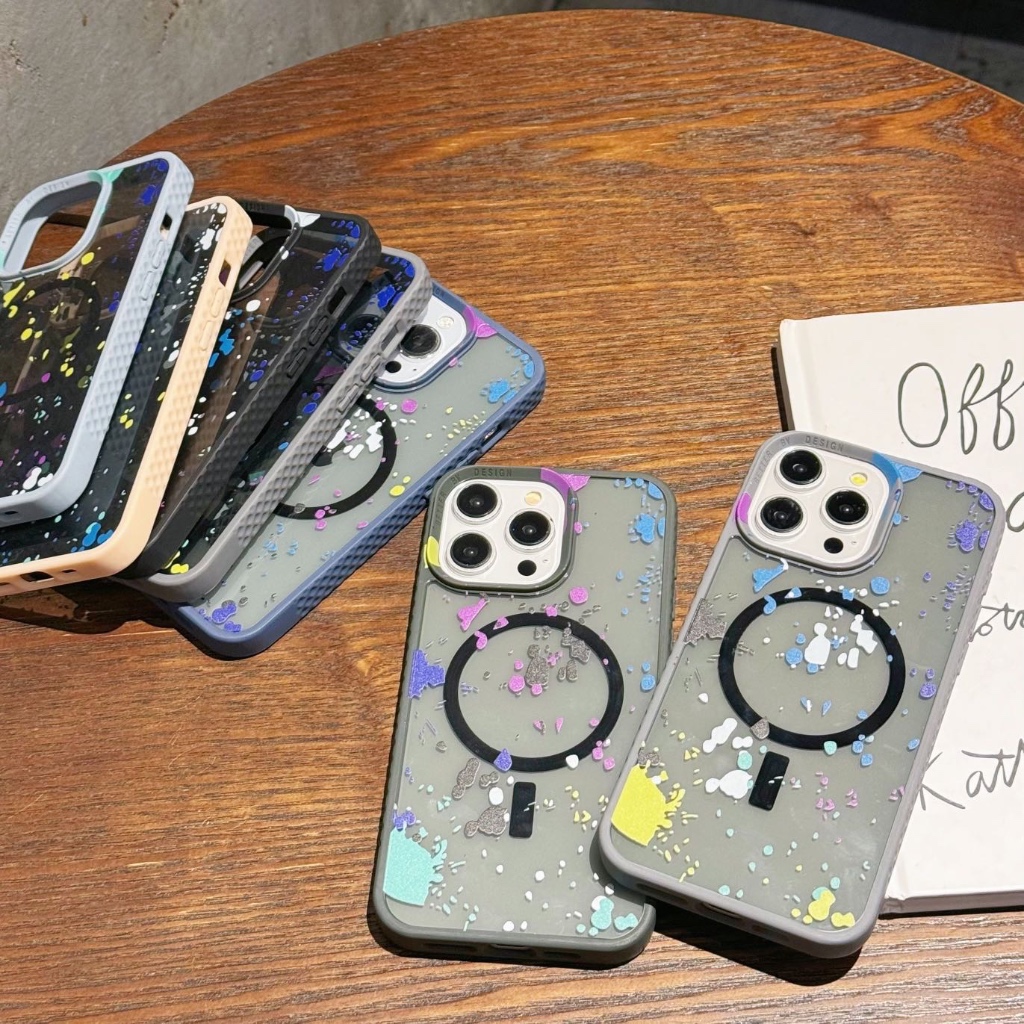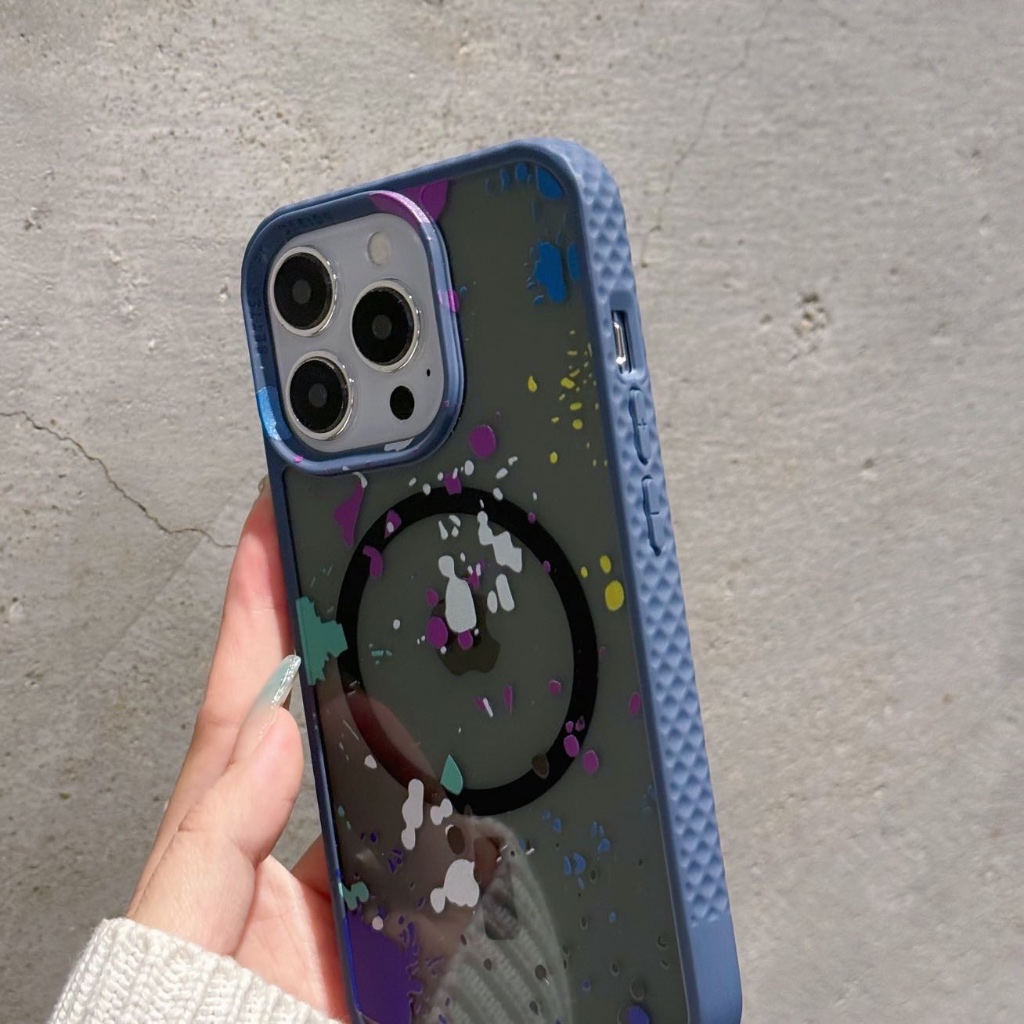 Luxo aquarela graffiti magnético translúcido para iphone 11/ 12 13 14 15 pc capa traseira rígida à prova de choque