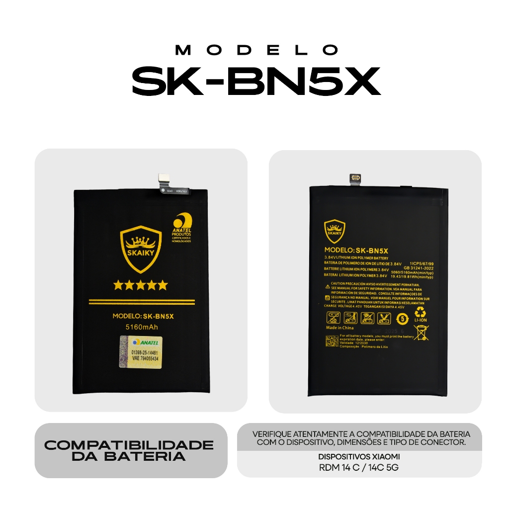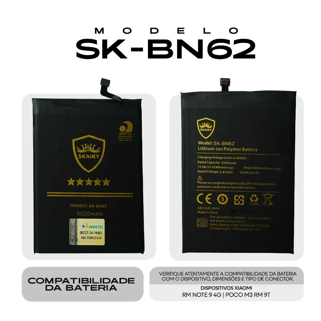 Bateria Oficial Premium Compatível com Xiaomi Certificação Anatel Qualidade Garantida 1 Ano