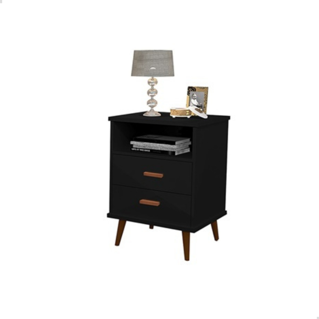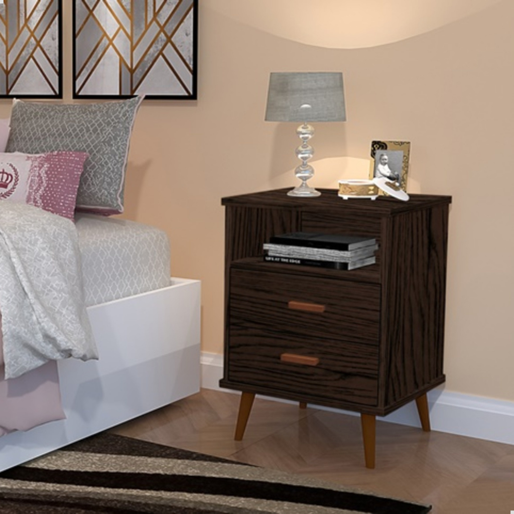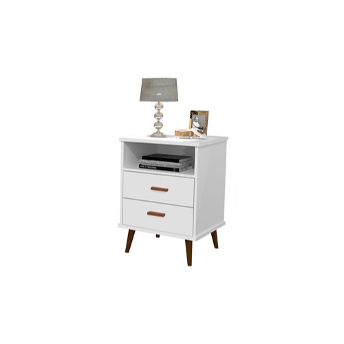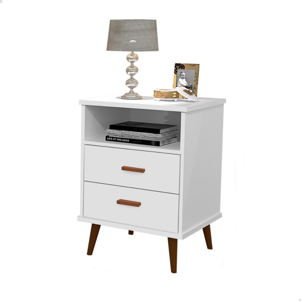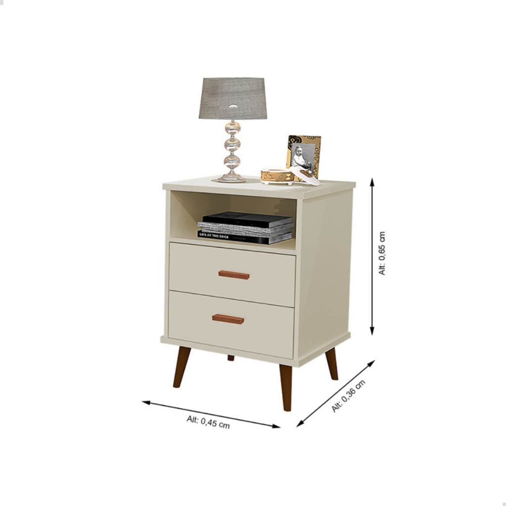 Mesa De Cabeceira Itália Com Nicho Para Quarto 2 Gavetas Retrô Cor Pés Palito Criado Off White