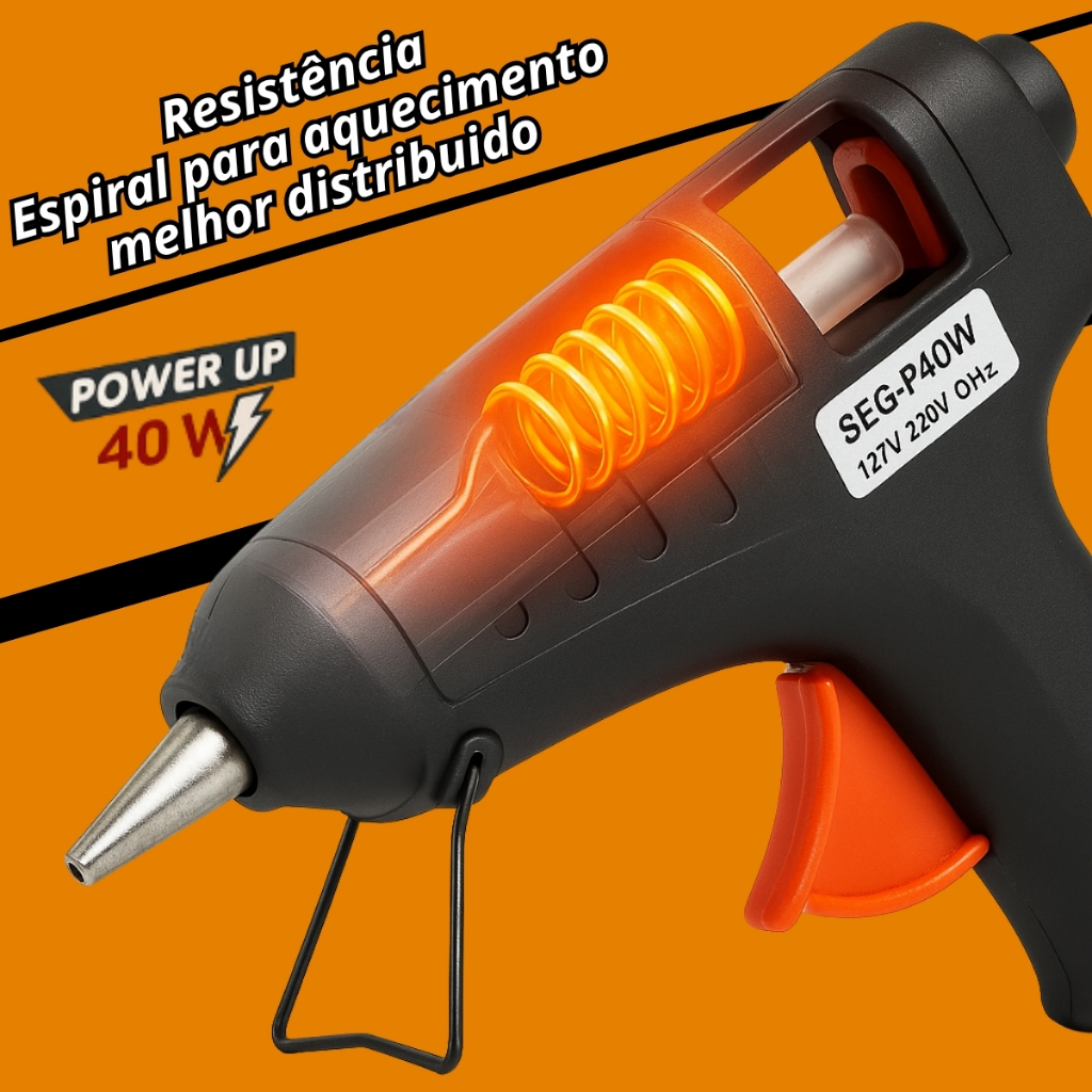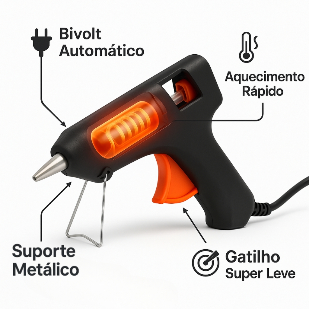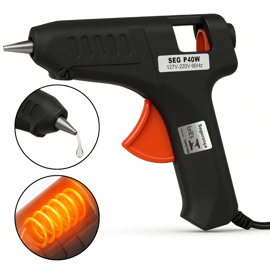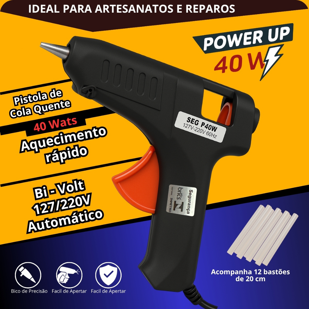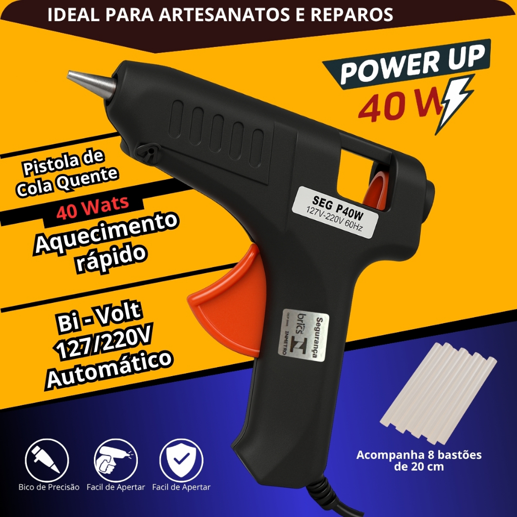 Pistola Cola Quente Grande 40W Bivolt Automático 127/220V Alta Potência Aquecimento Rápido Profissional