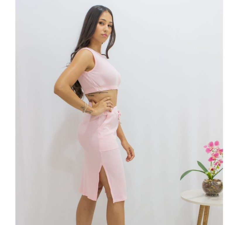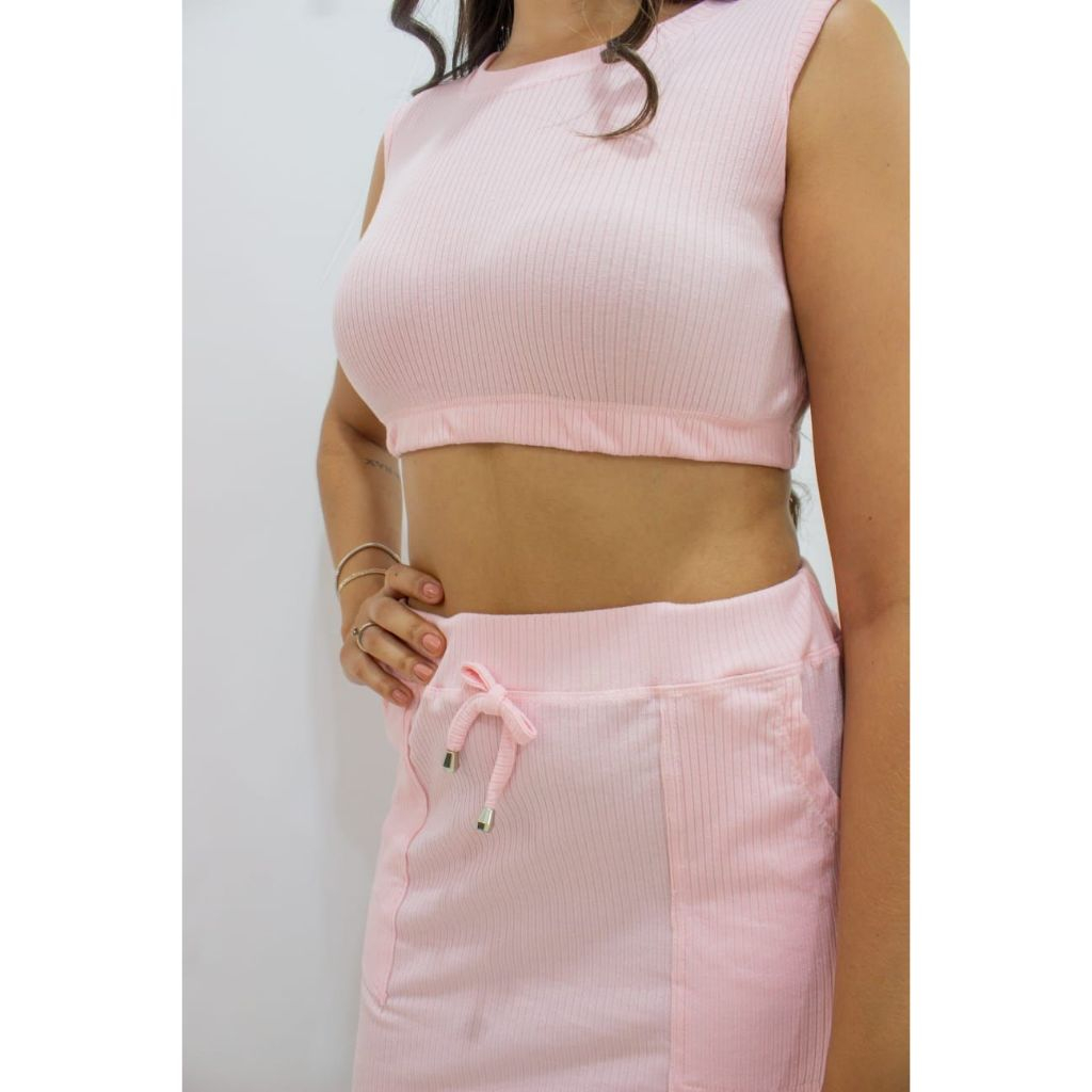 Conjunto Canelado Baby Feminino Saia Blusa