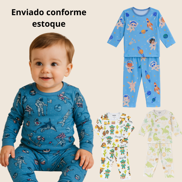 Kit 02 pijamas premium alta qualidade bebê Menino/Menina Estampas Sortidas