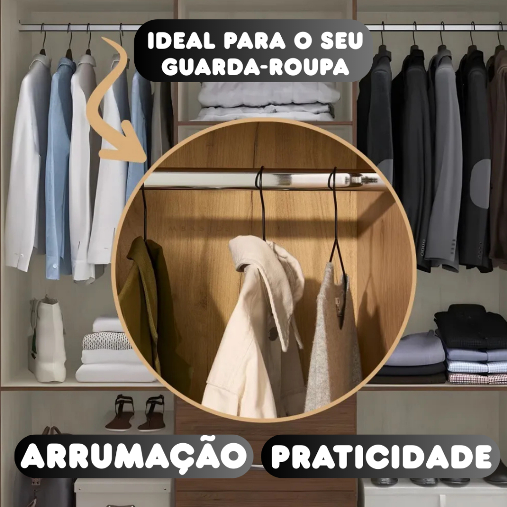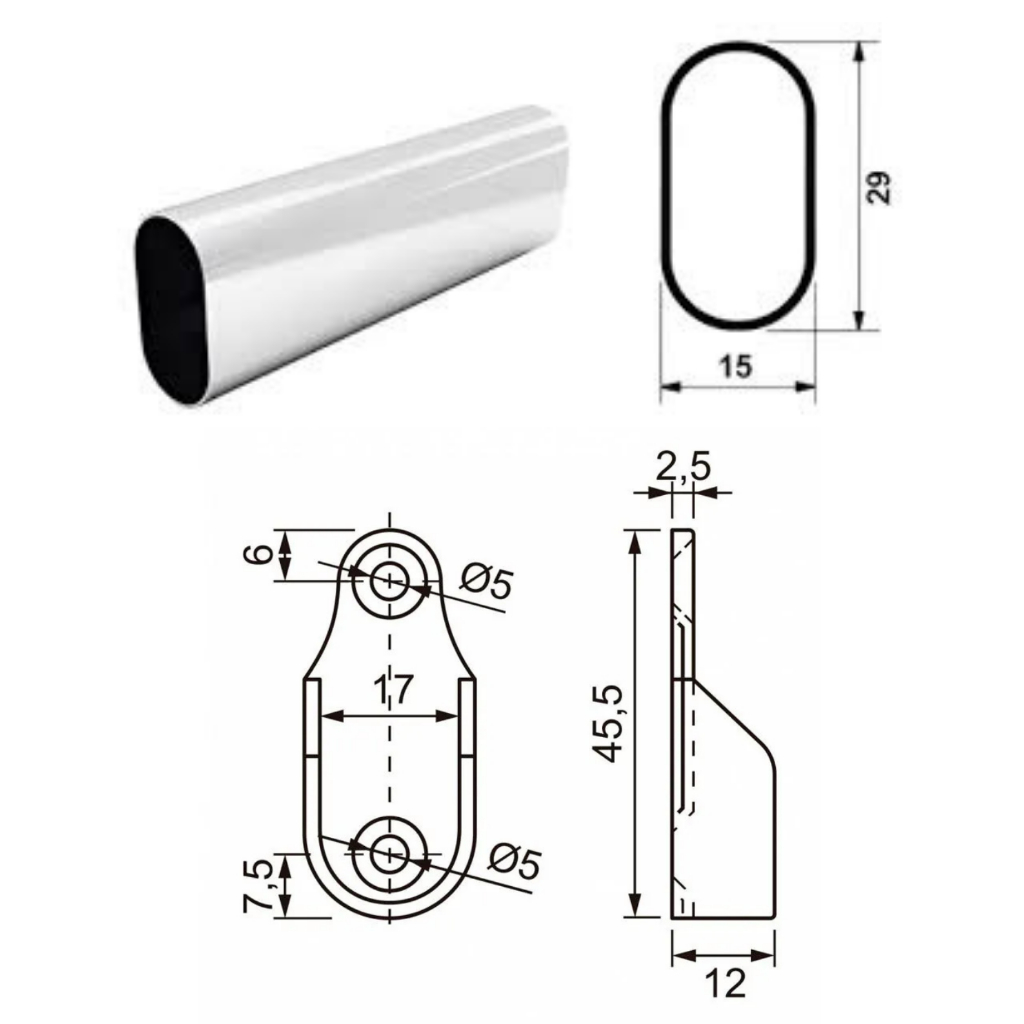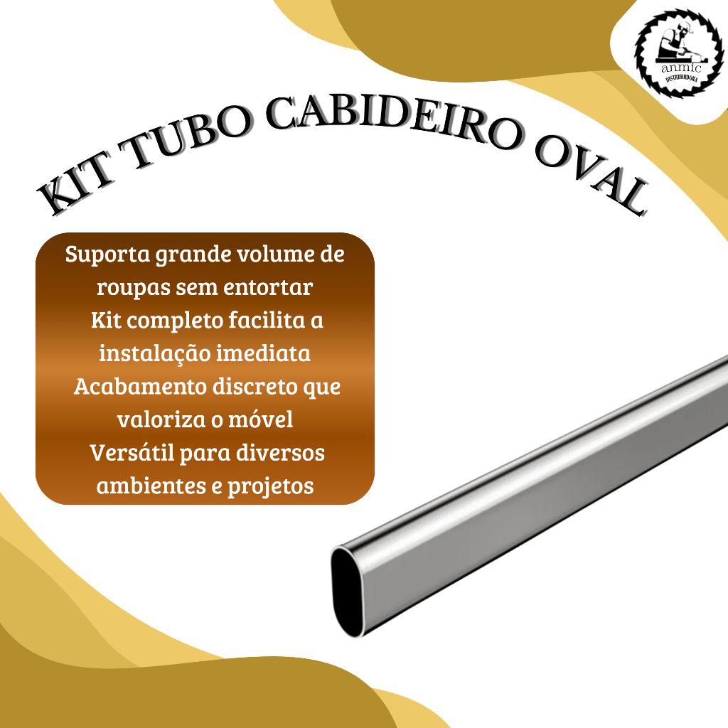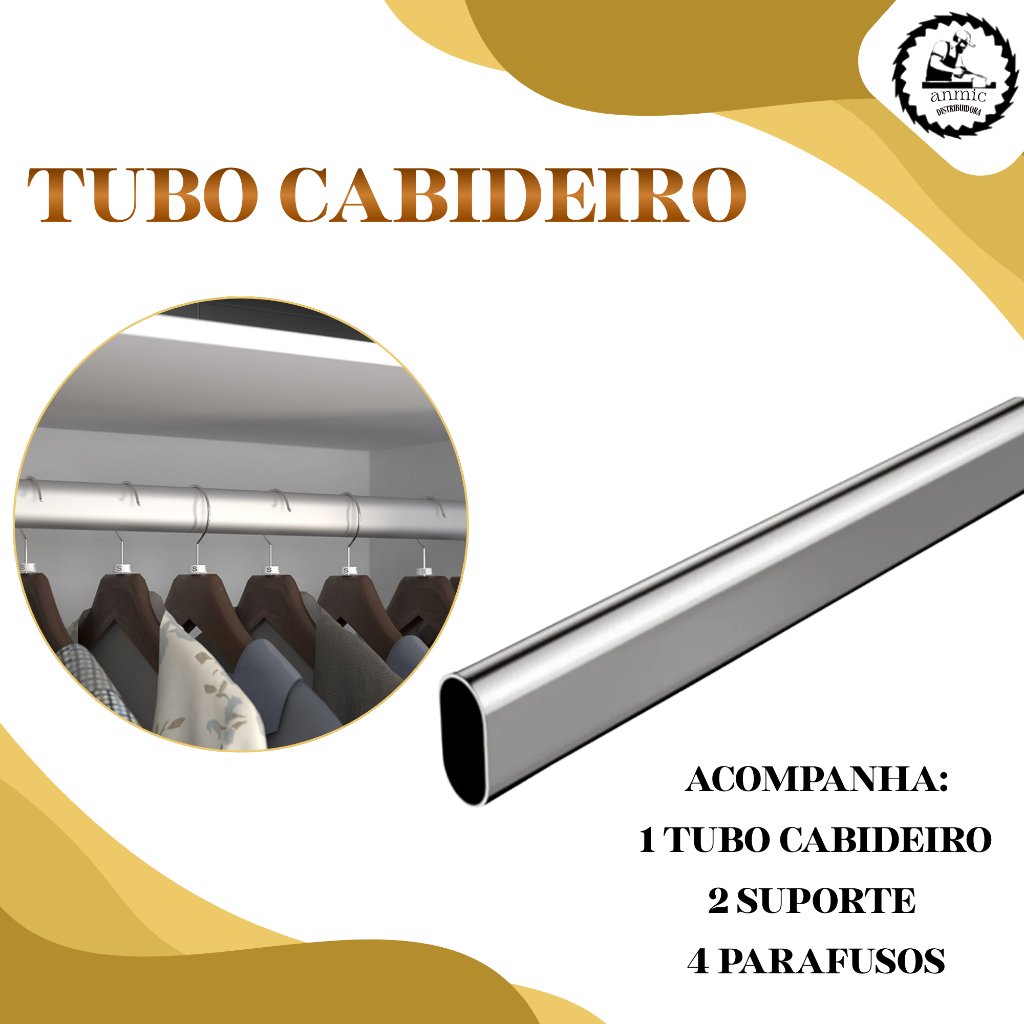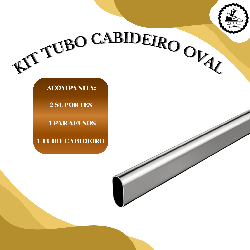 1 Kit Tubo de Cabideiro Oval Arara para Guarda-roupas e Closets + Suportes Laterais e Parafusos (Sob Medida)