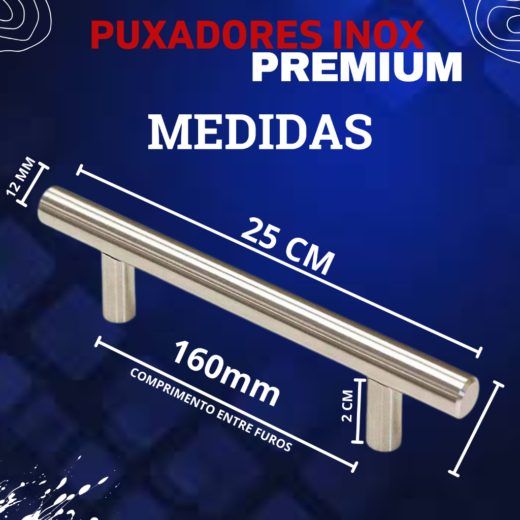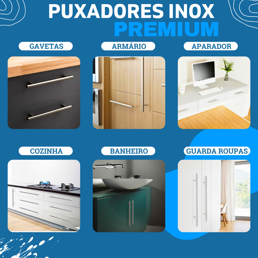 Puxador de Gaveta Inox Kit 4 5 6 7 8 9 10 11 12 Peças 64mm 96mm 128mm 160mm 192mm 224 Guarda-Roupa Closet Portas Armario