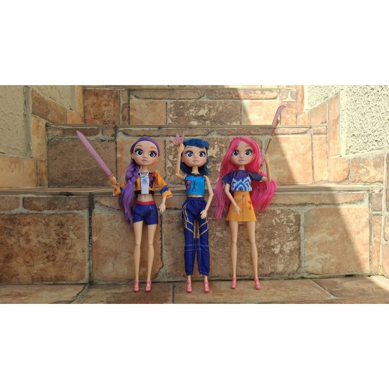 KPop Demon Hunters Boneca kit 3 Articulação Móvel Vestido De Princesa COM MUSICA Zoey Rumi Mira olhos de vidro lindas