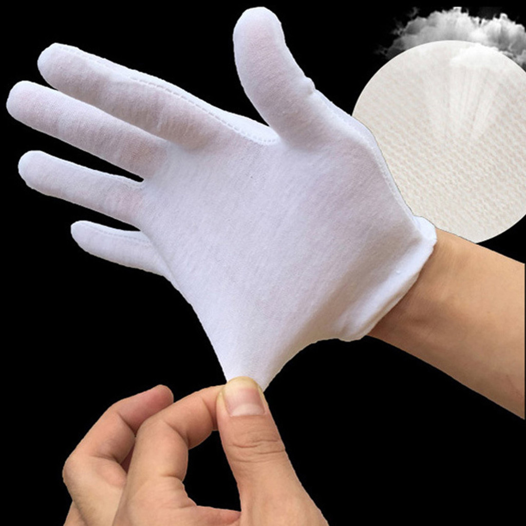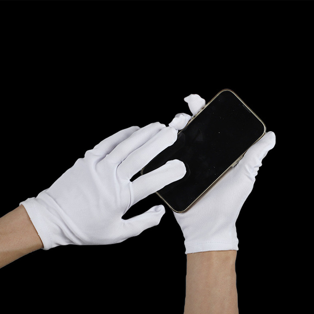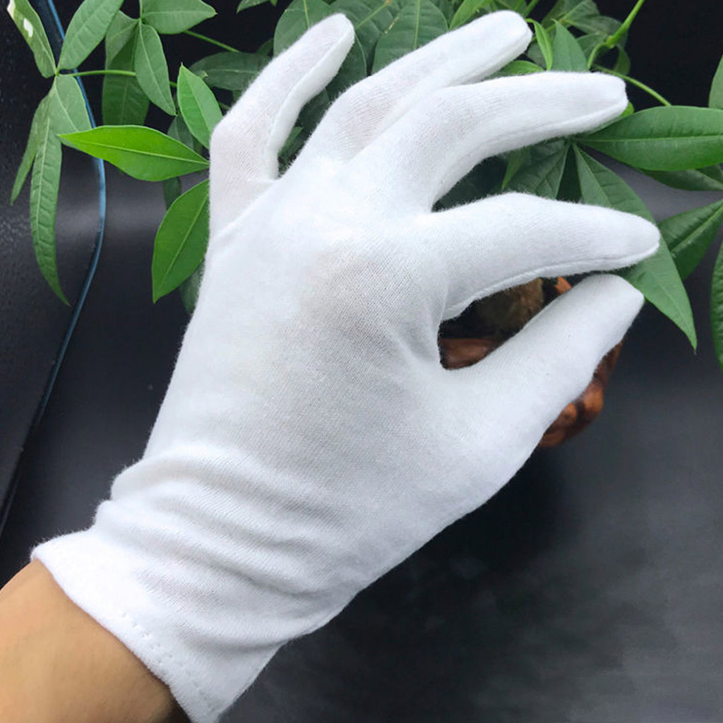 12 Pares De Luvas De Trabalho De Algodão Branco Para Mãos Secas , Cerimonais De Alta Elasticidade , Ferramentas De Limpe