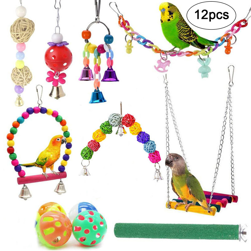 12pçs Brinquedo Durável Para Pássaros , Conjunto De Brinquedos Mastigar Papagaio De Madeira , Acessórios Ponte De Suspen