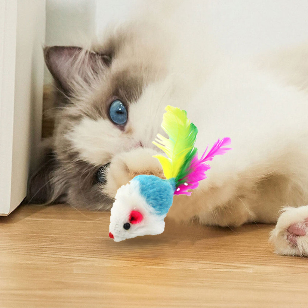 10 Pçs Mix Ratos Pena Gato Brinquedo , Resistência À Mordida Simulação De Pelúcia Mouse , Para Animais De Estimação Gati