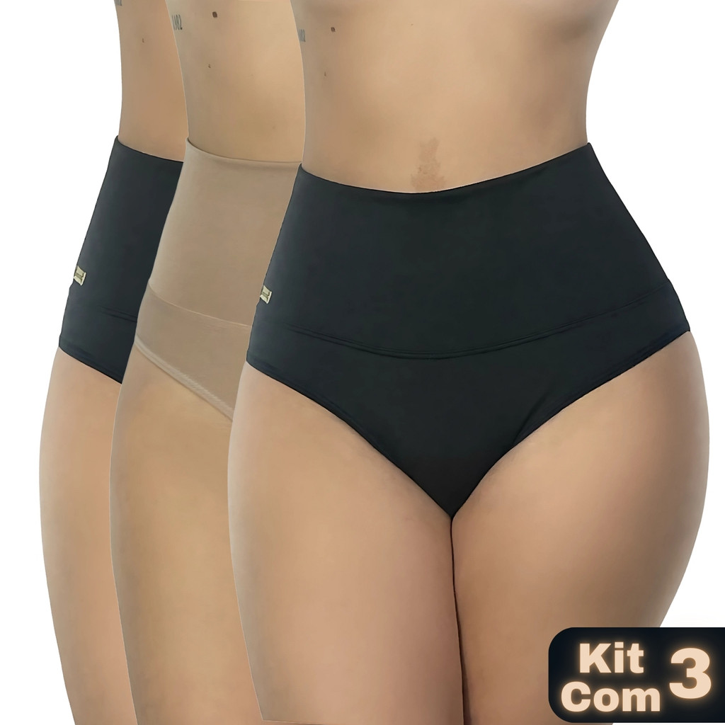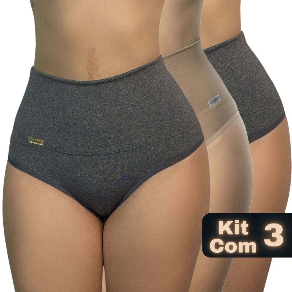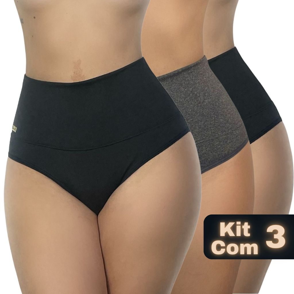 kit 3 Cintas Suplex Alta Compressão Cós Duplo Pós-Parto Gestante Não Enrola