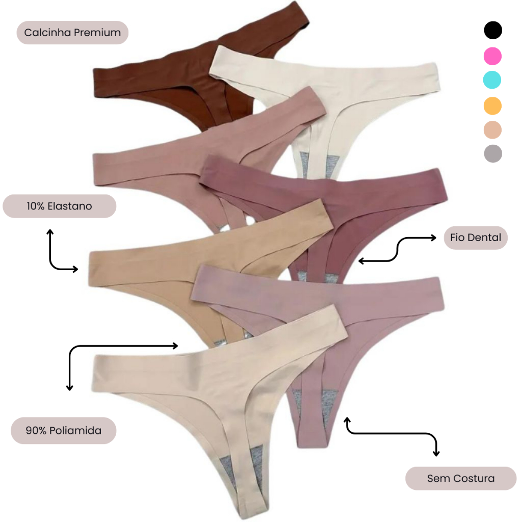 Kit 7 ou 4 Unidades de Calcinha Fio Sem Costura a Laser