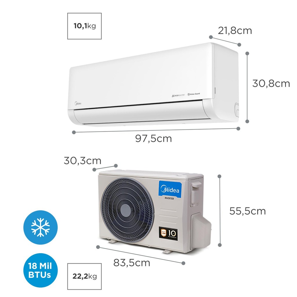 Ar Condicionado 18000 BTUs Split Hi Wall Inverter Midea Frio AI Ecomaster 220V