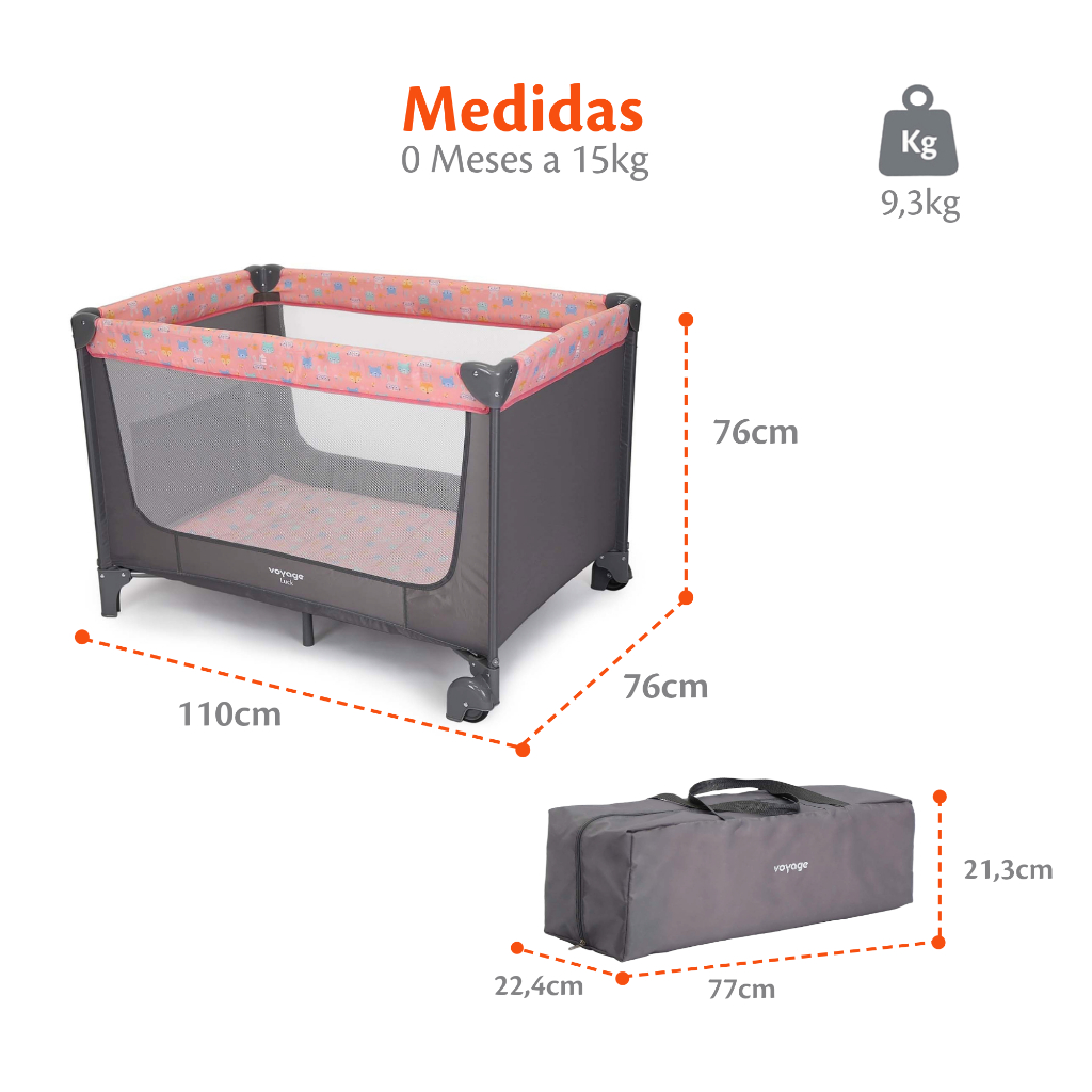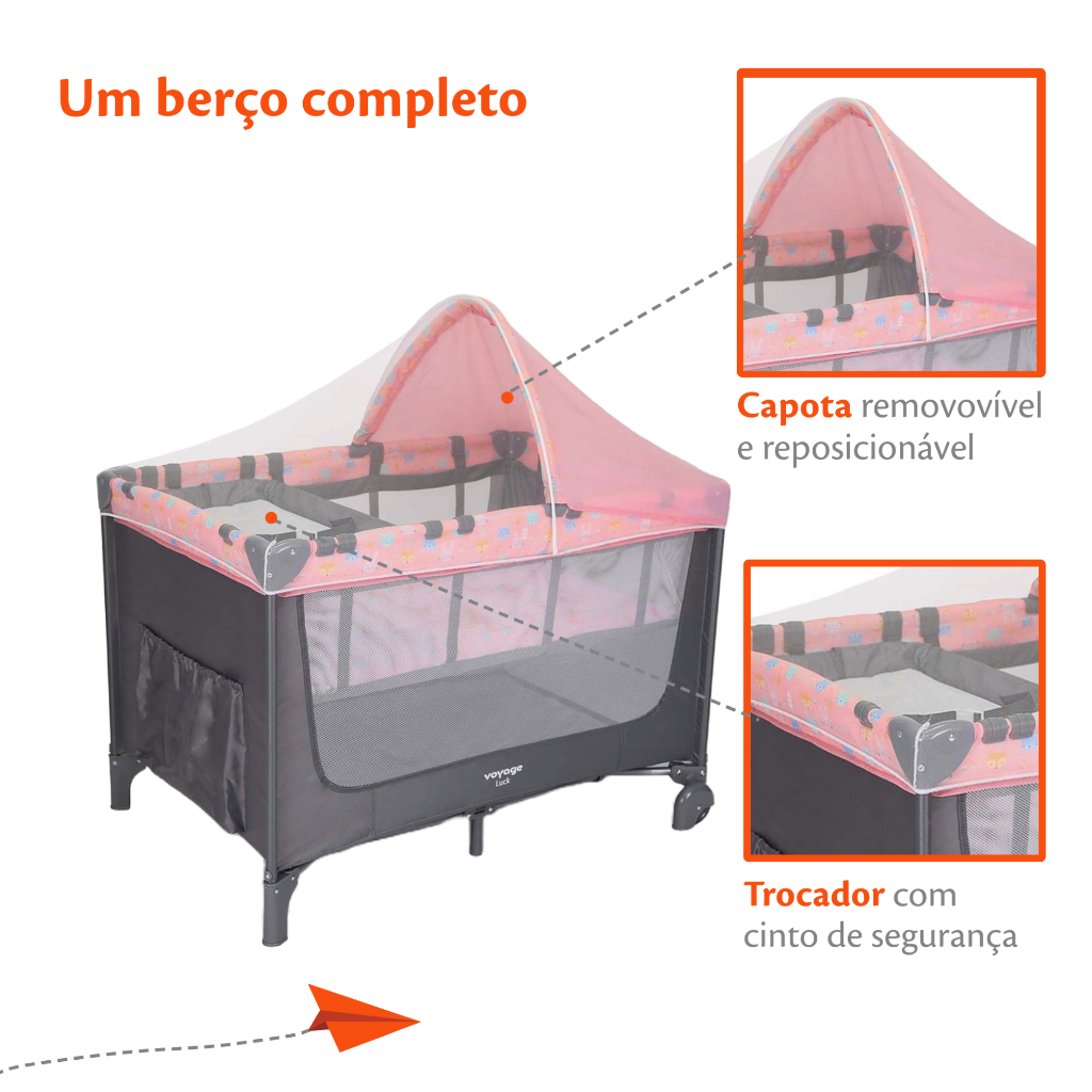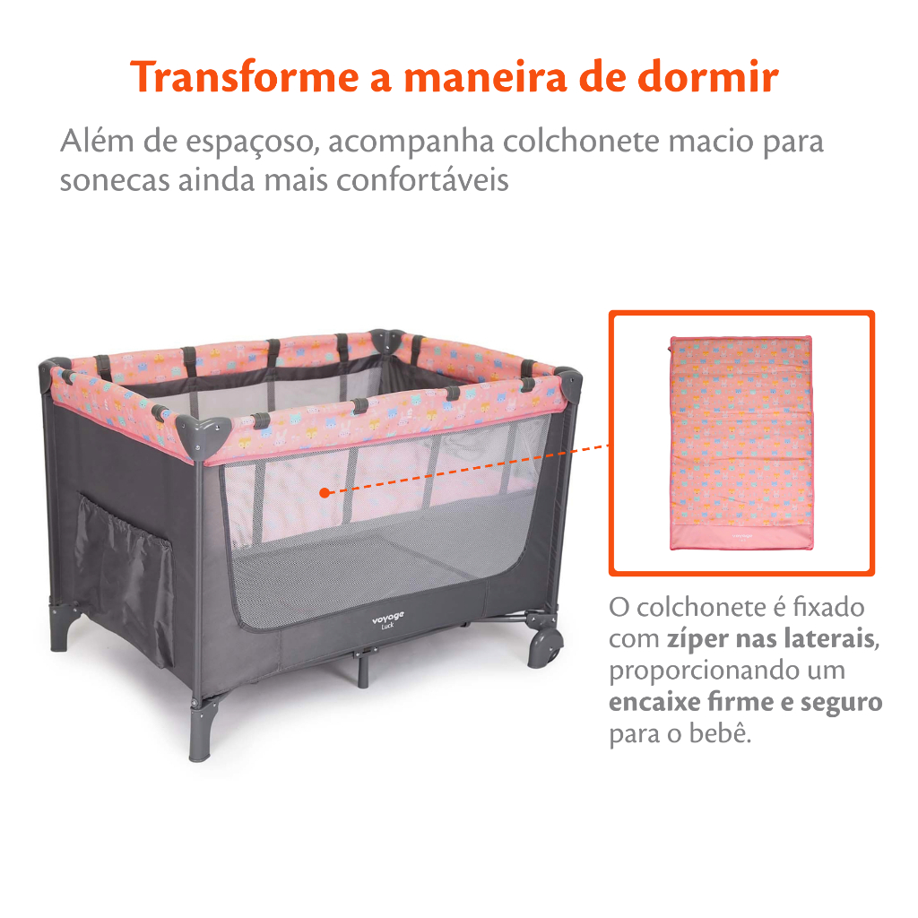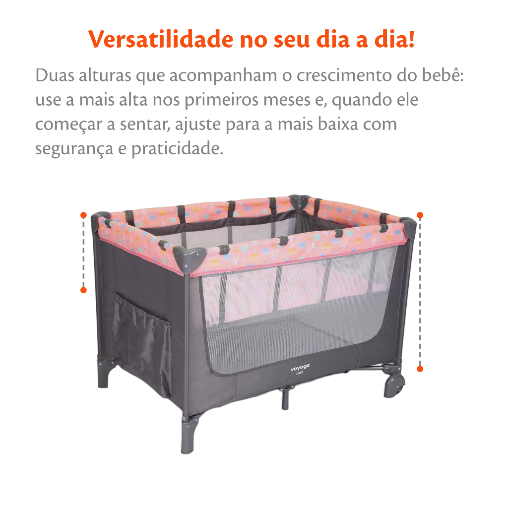 Berço Portátil Luck Rosa Boreal 2 Alturas com Mosquiteiro- Voyage