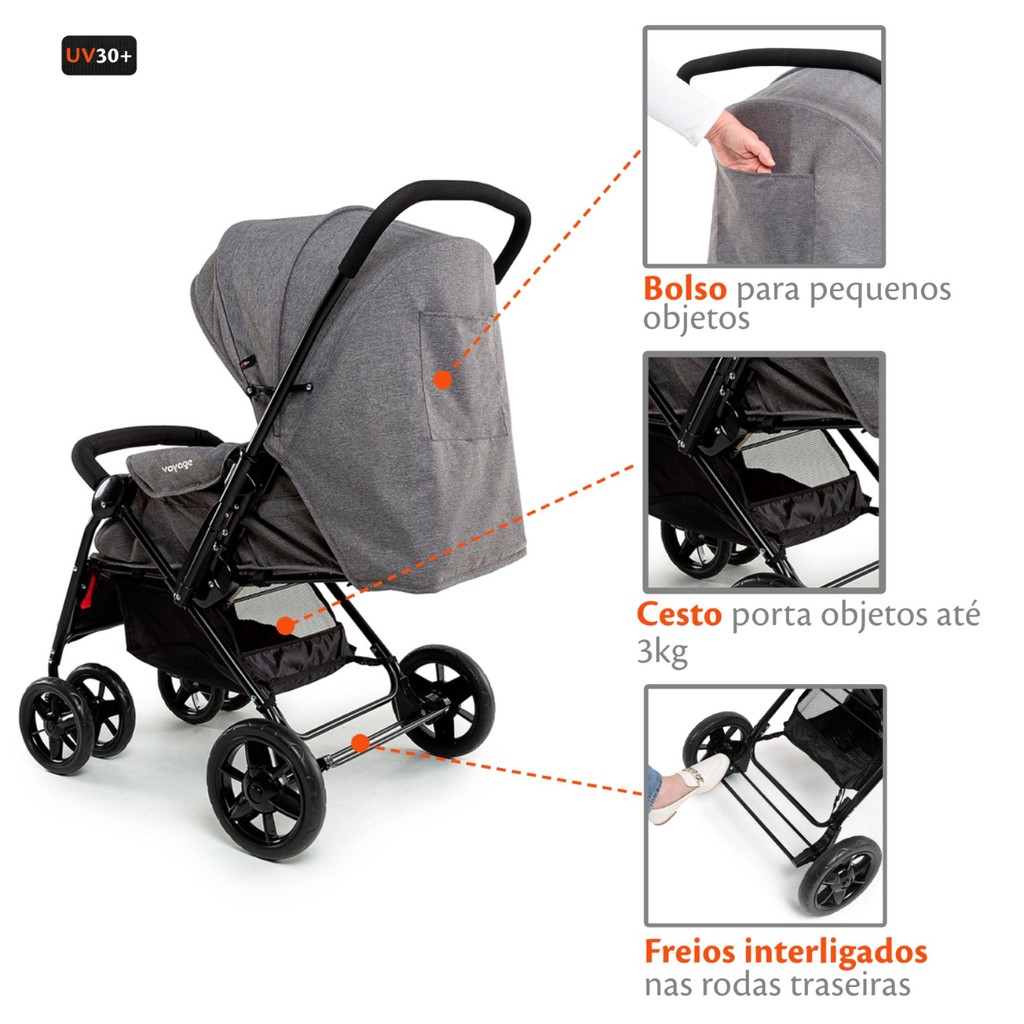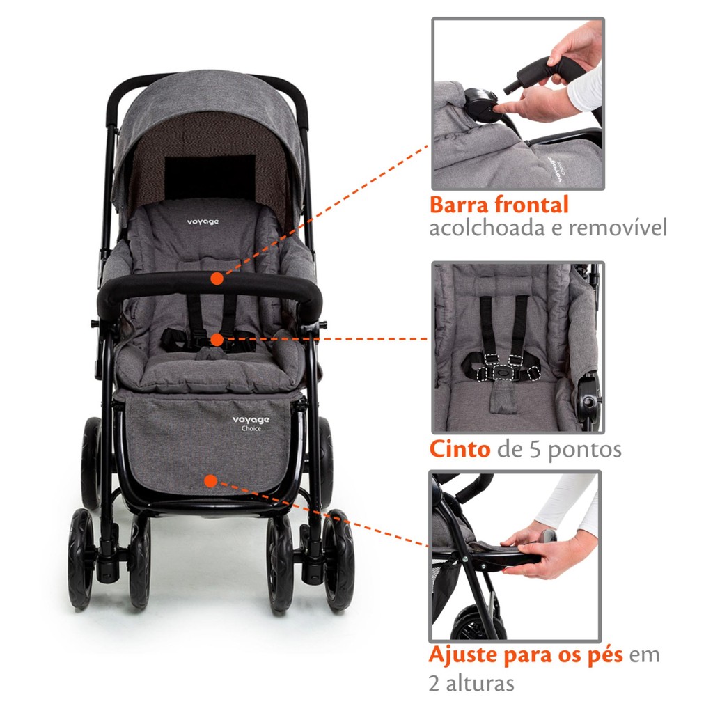 Carrinho De Bebê com Alça Reversível Passeio Choice Voyage