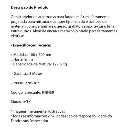 Misturador P\ Furadeira Argamassa/gesso/massa 848459