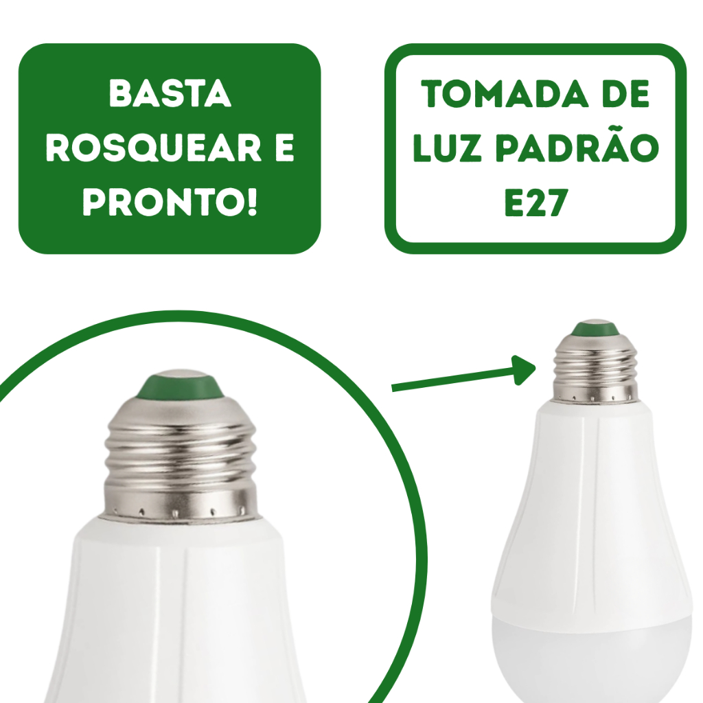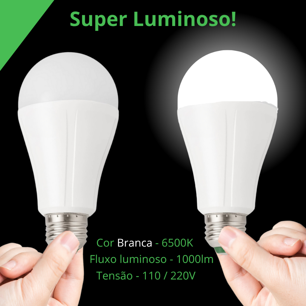 Kit C/2 Lampada Emergencia Luz Led Bivolt Recarregável