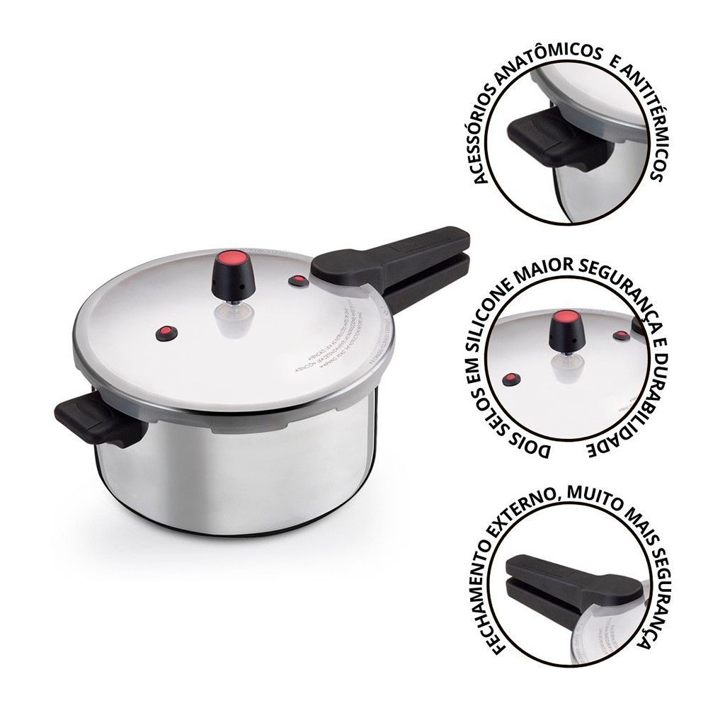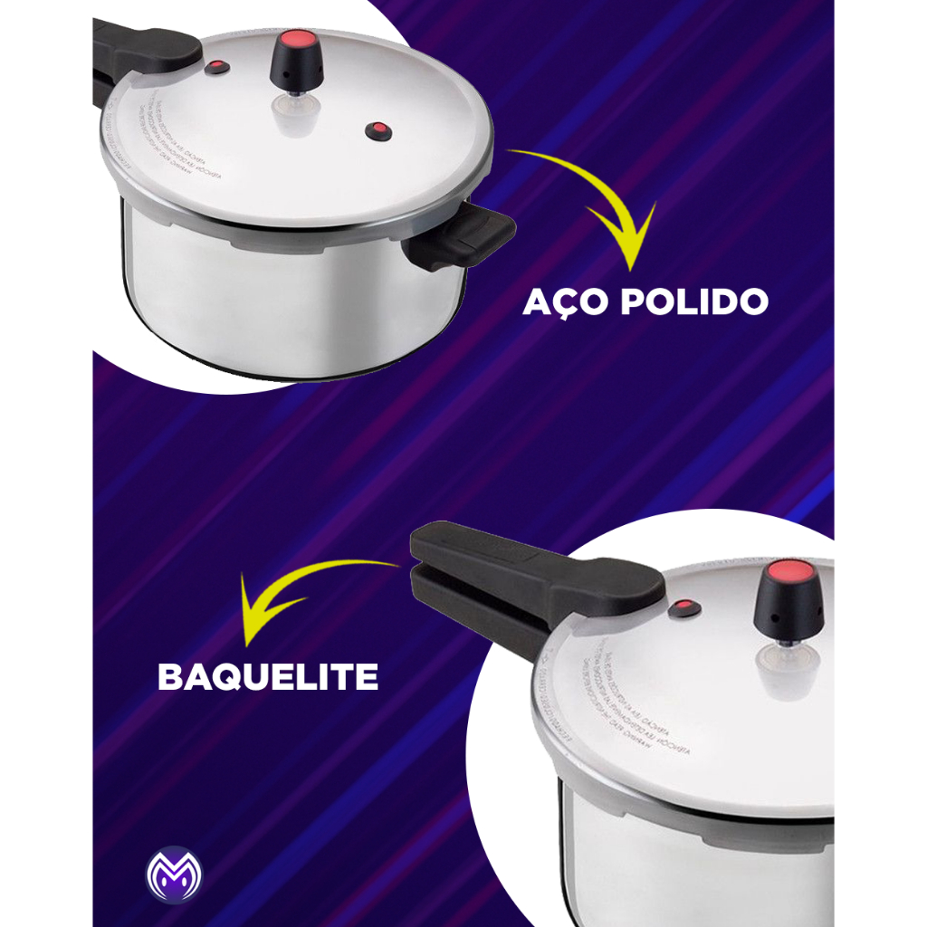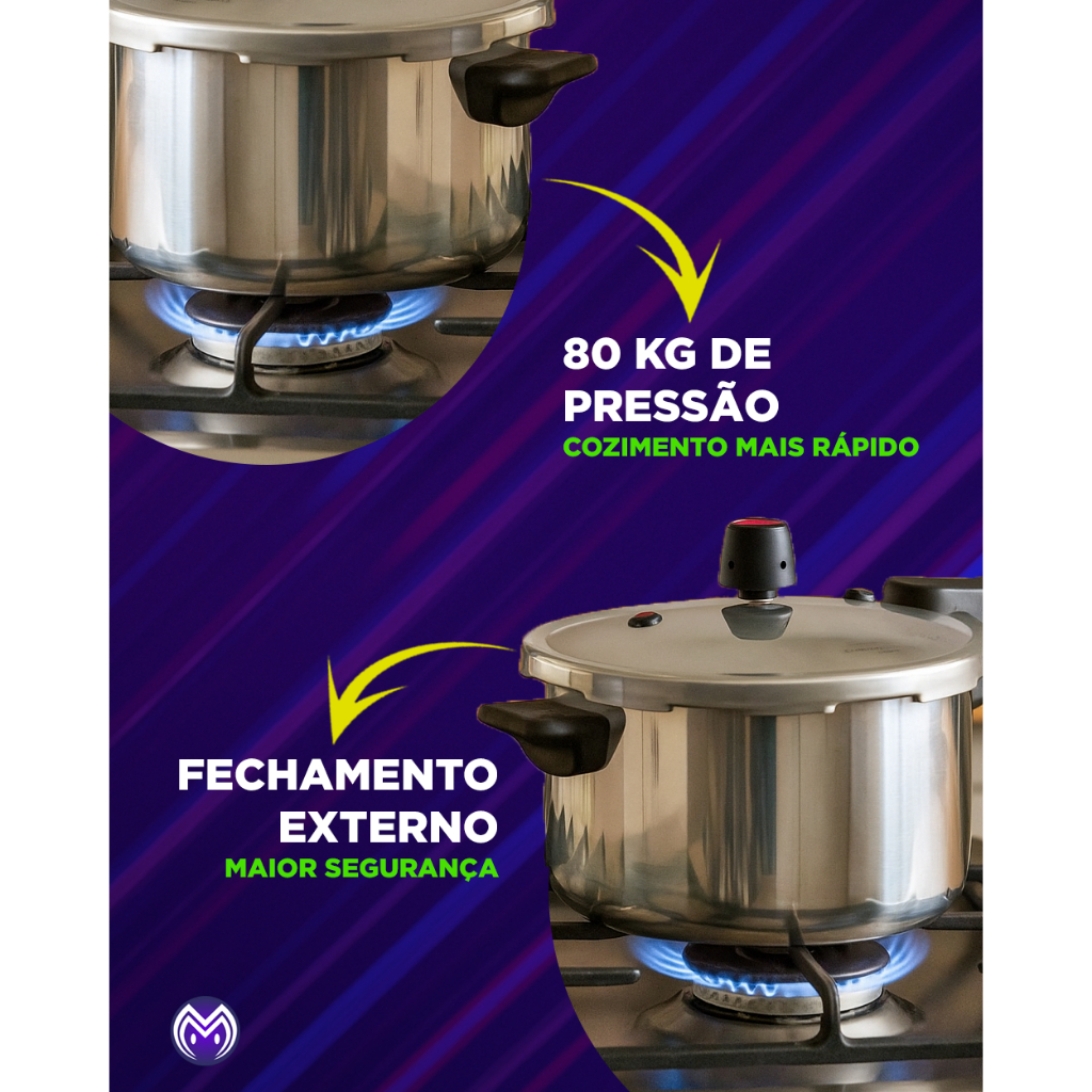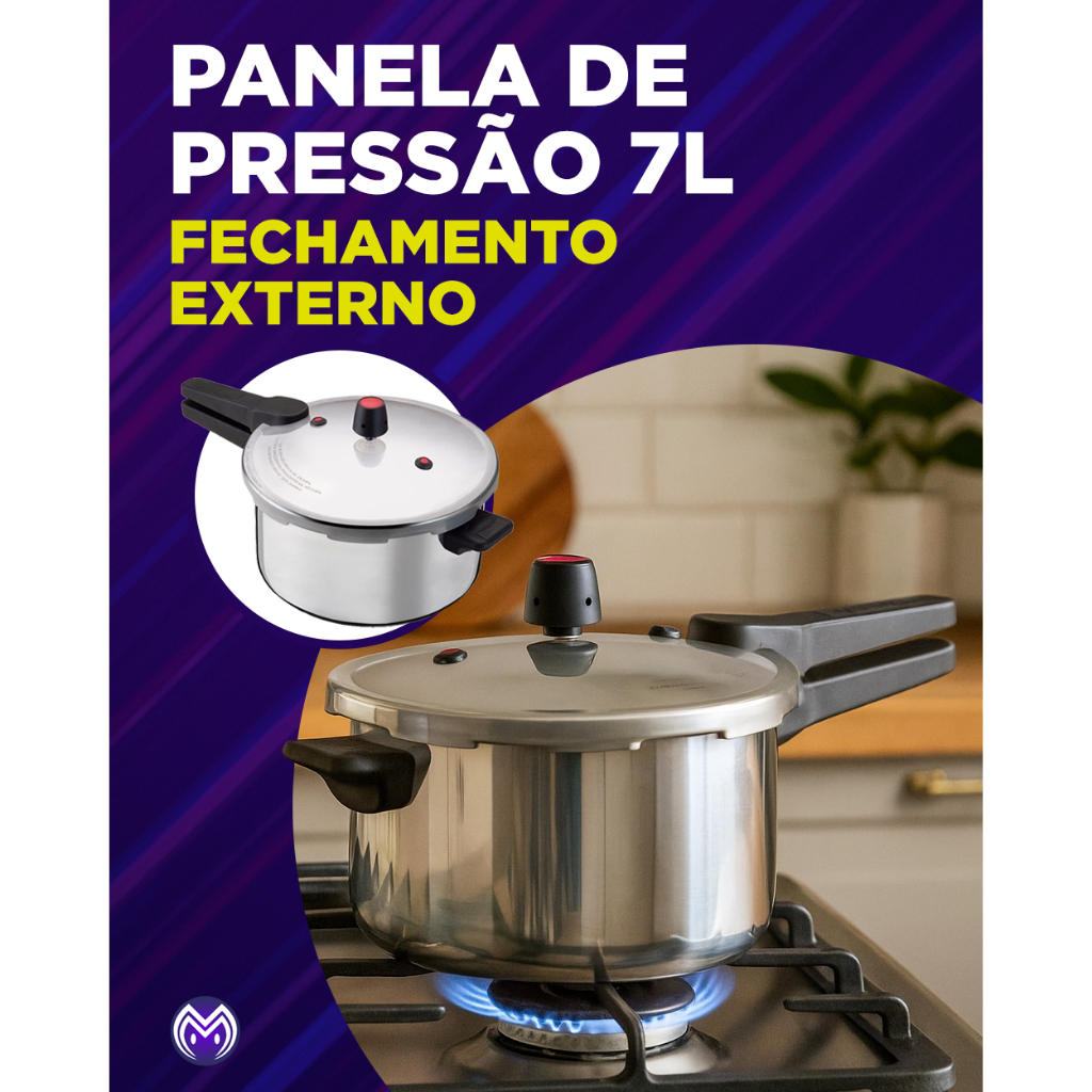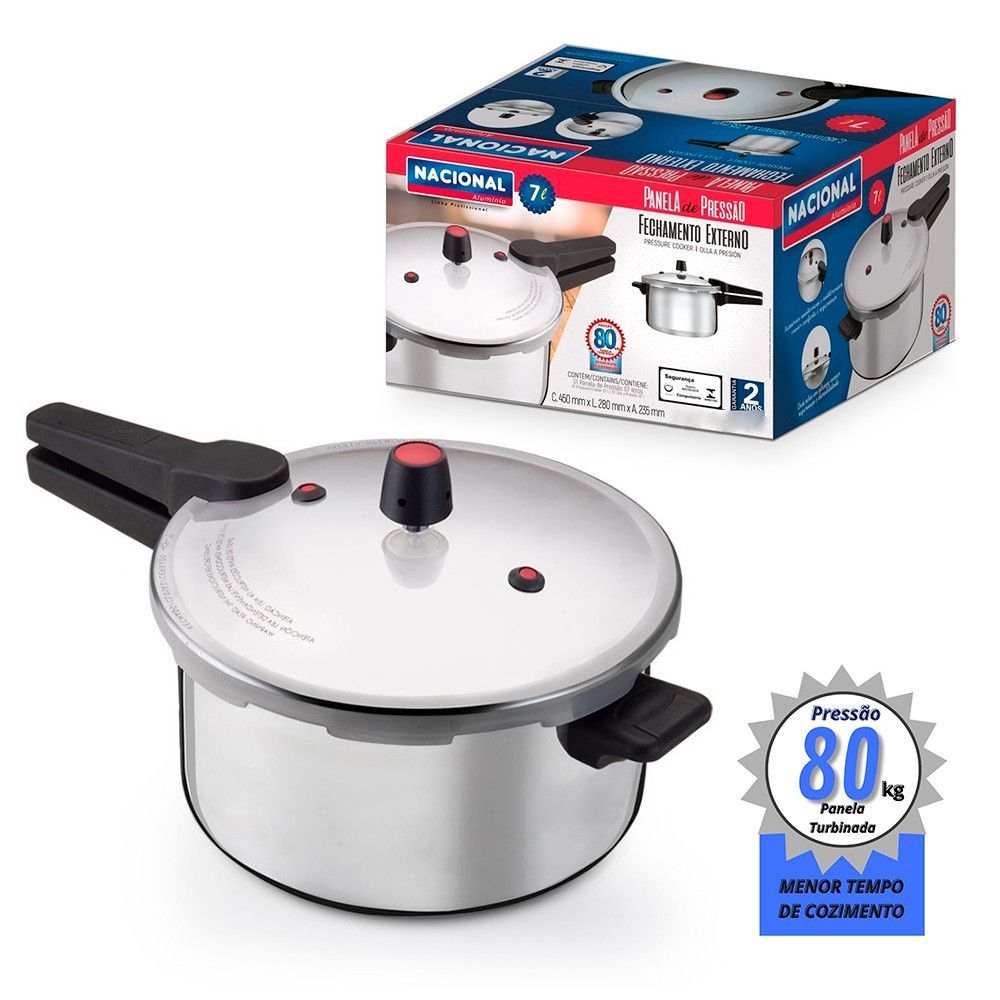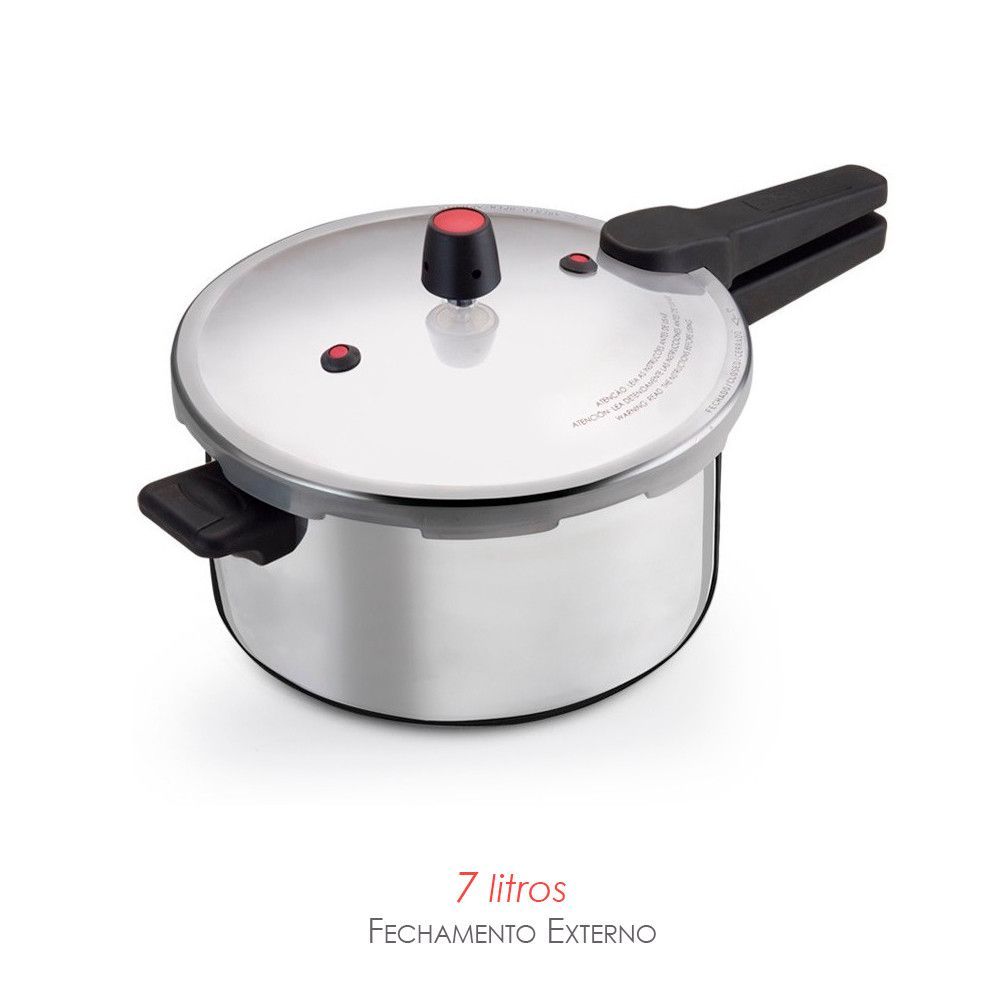 Panela de Pressão com Fechamento Externo 7 ou 10 Litros Rápida Segura Prata Nacional Feijão Carne Restaurante Cozinha