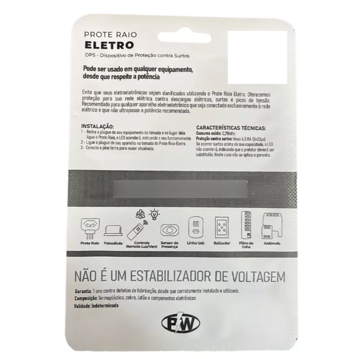 Protetor Contra Raio Surtos Picos Eletro com 2 Tomadas 127v 220v 10A