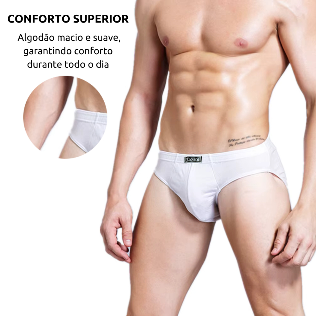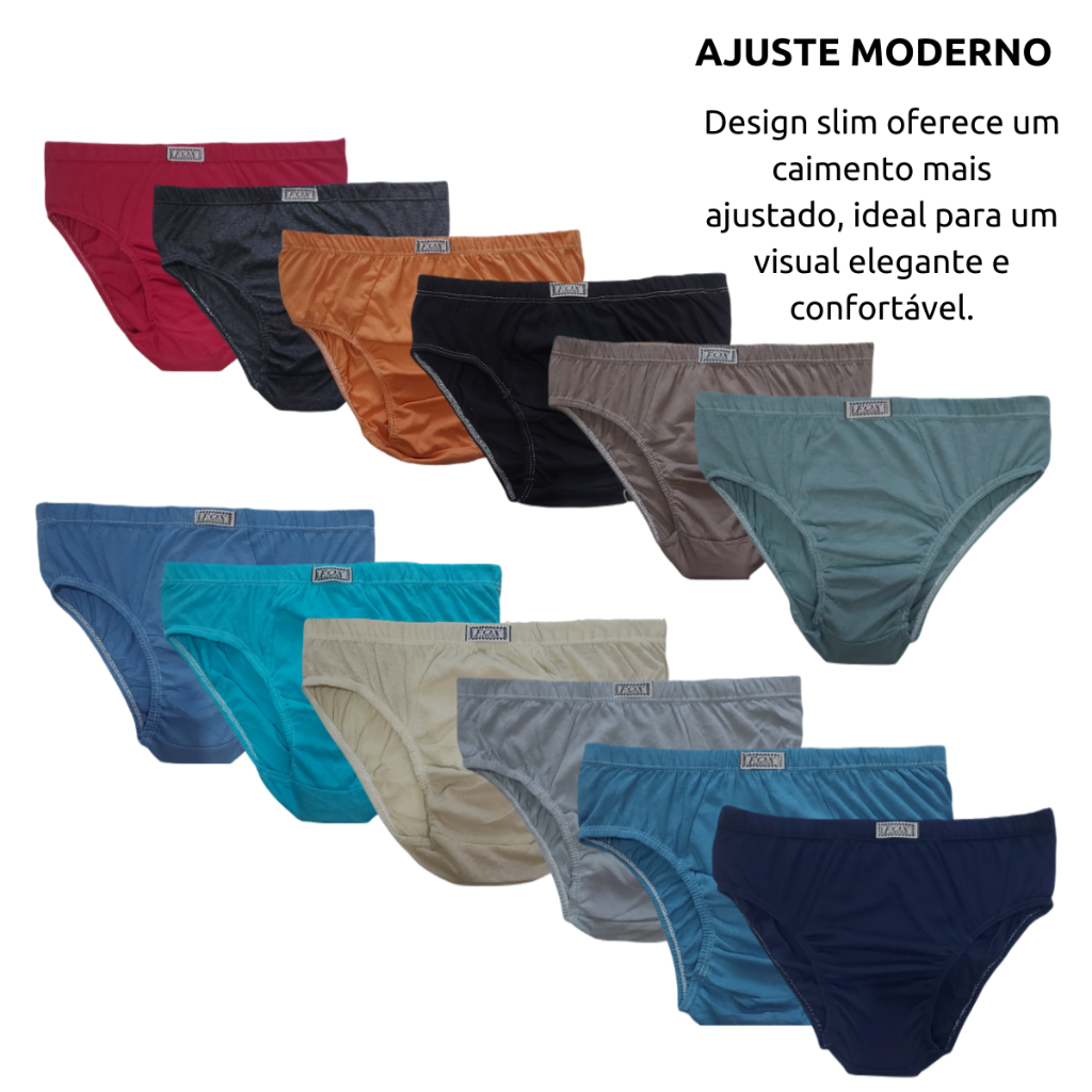 Cueca Masculina Adulto 100% Algodão Kit 3 Cores Modernas Tecido Super Macio Confortável e Respirável