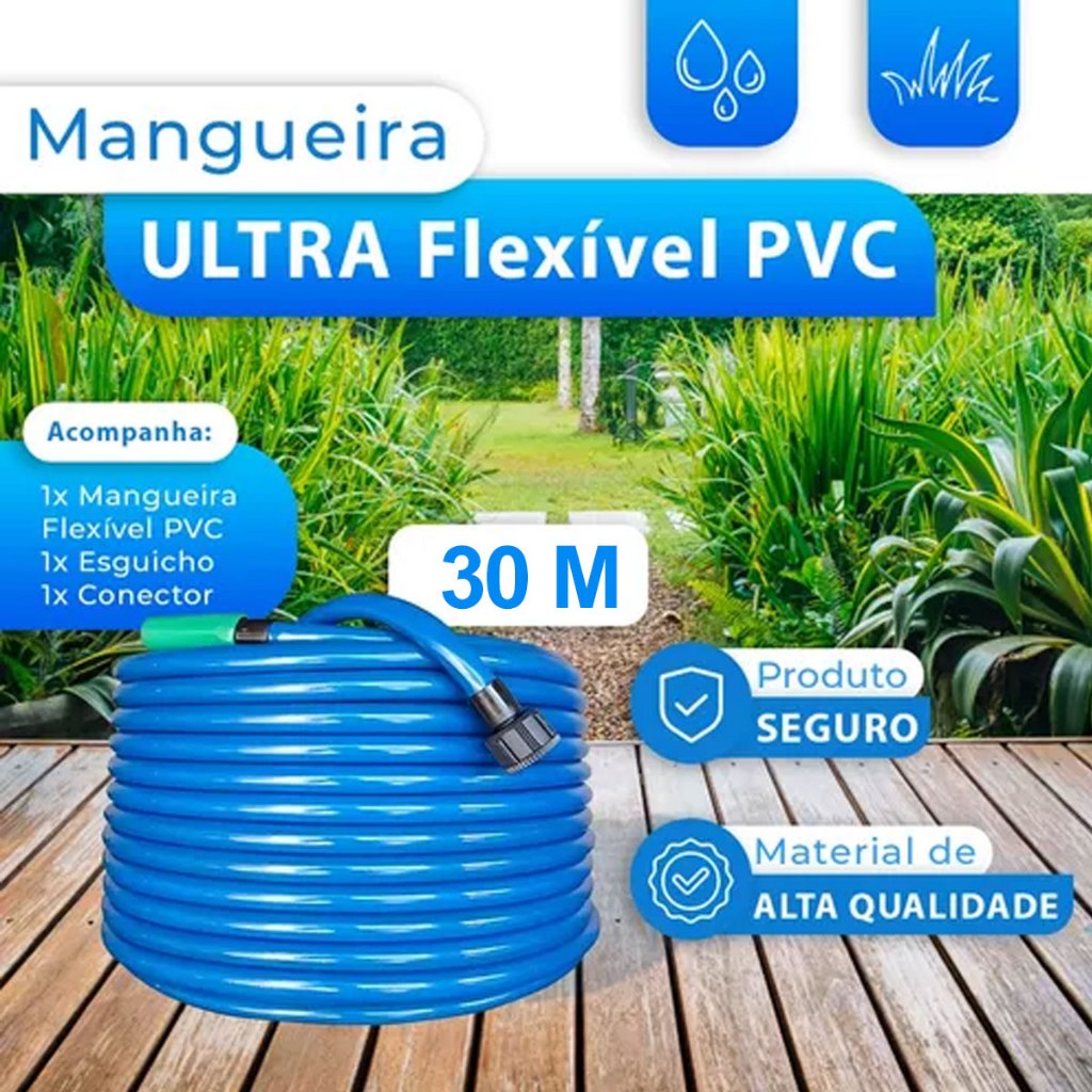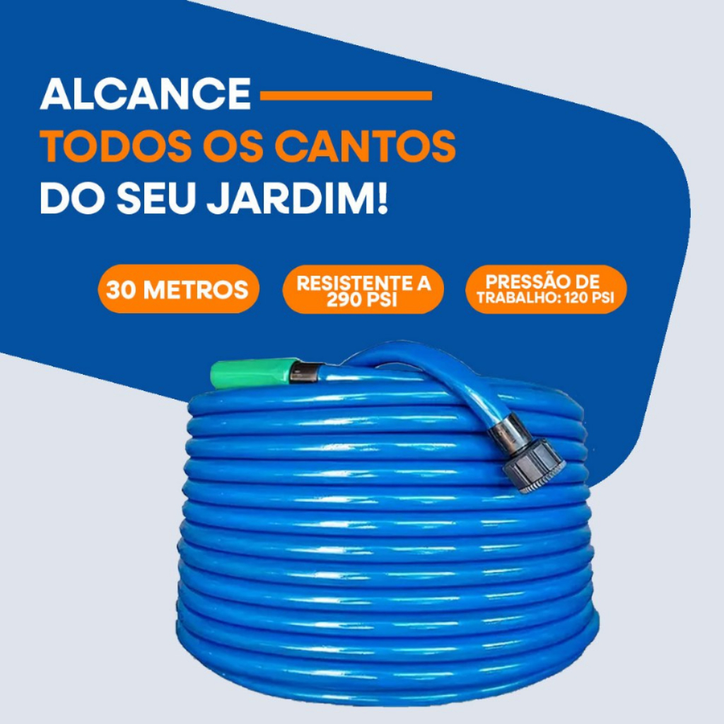 Mangueira Jardim Reforçada Lisa Flexivel Metros 10 15 20 25 30 40 50 + Suporte Mangueira de Parede Promoção