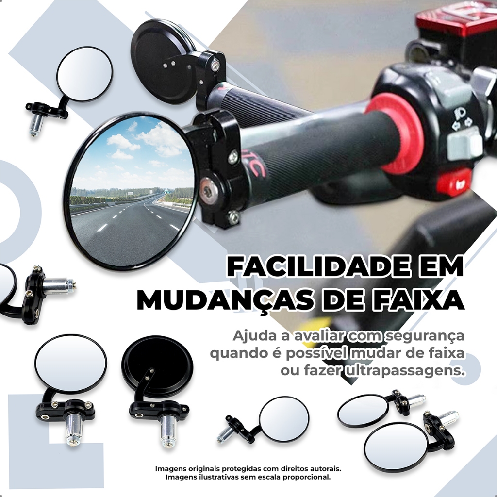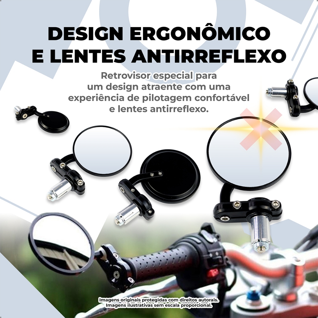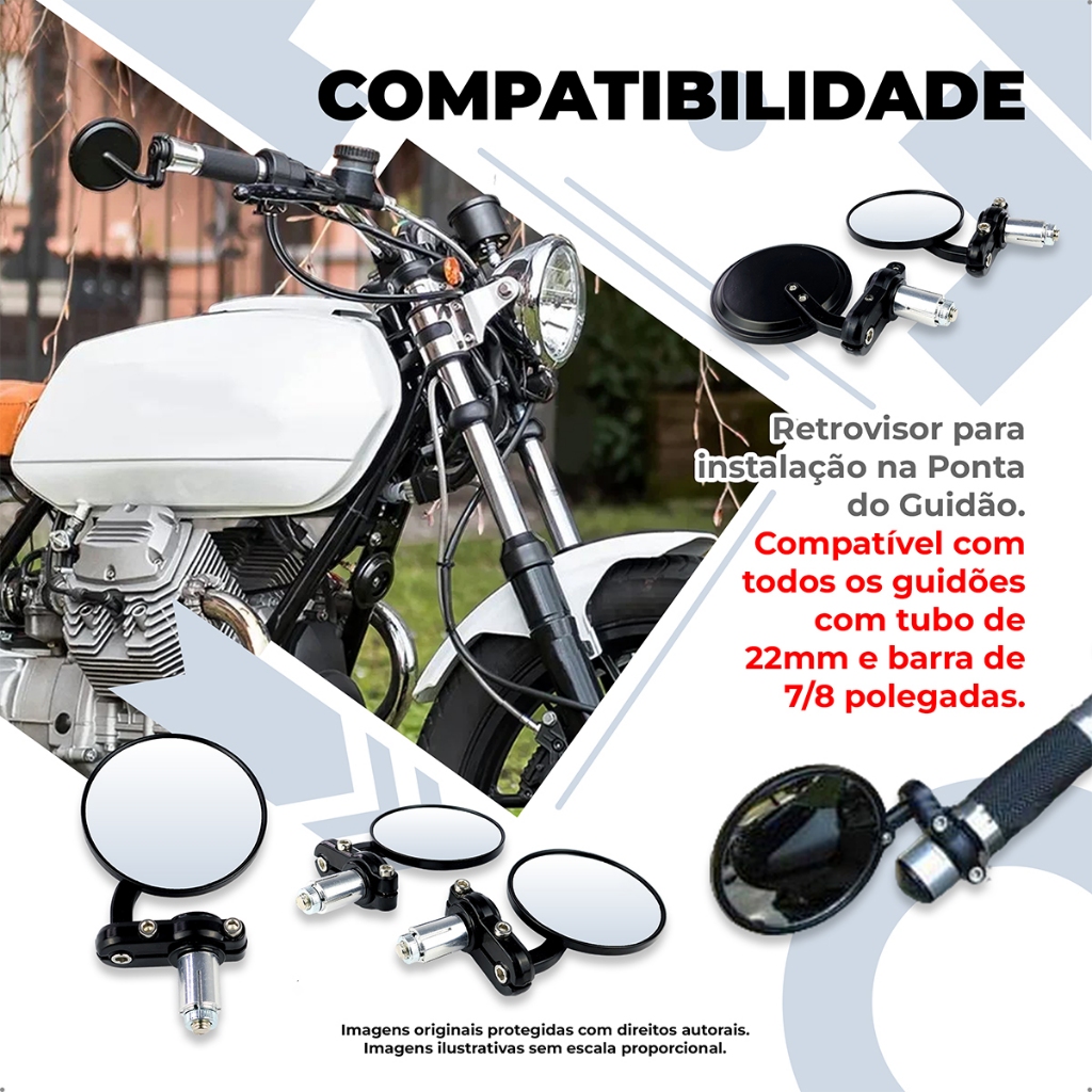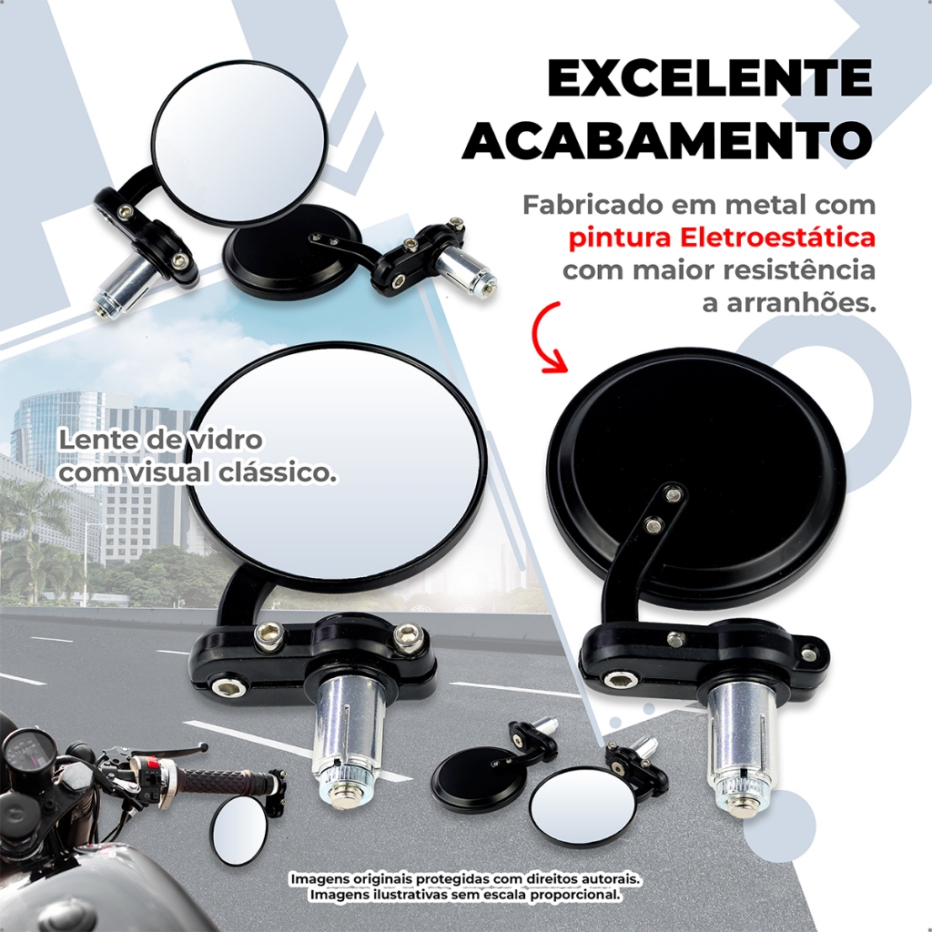 Retrovisor Moto Redondo Ponta Guidão 22mm Café Racer Esportivo Clássico Preto Par antirreflexo