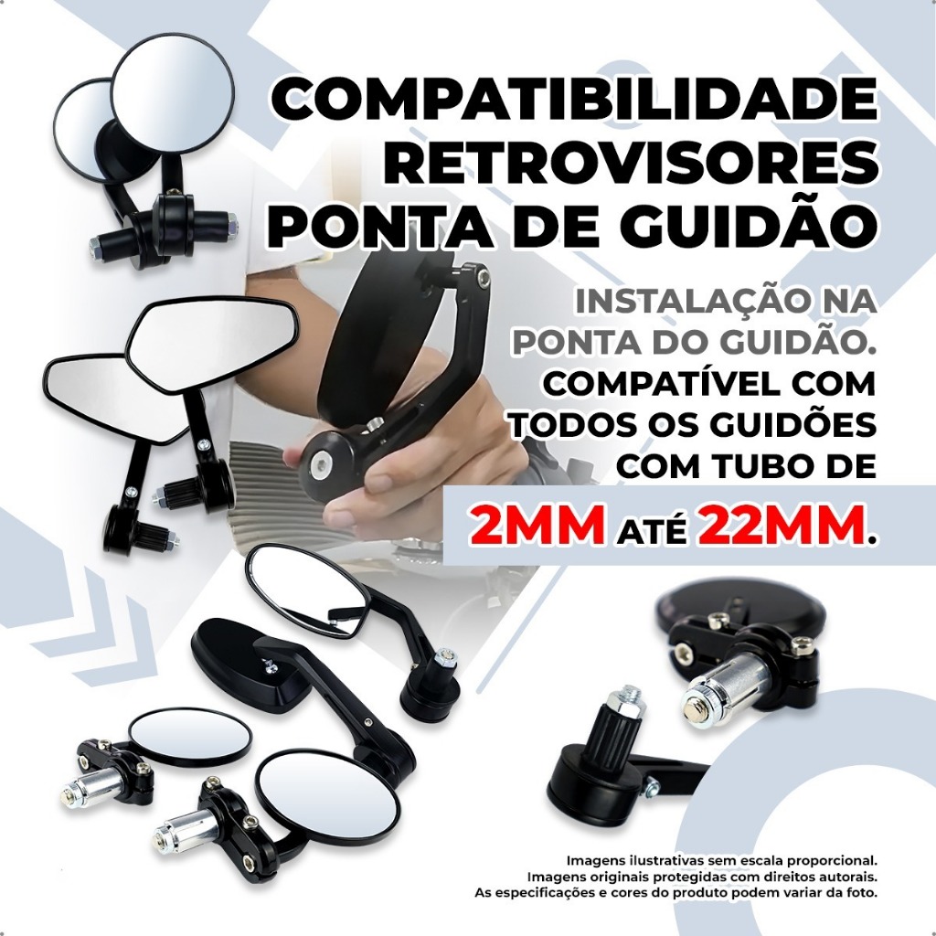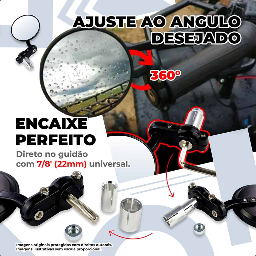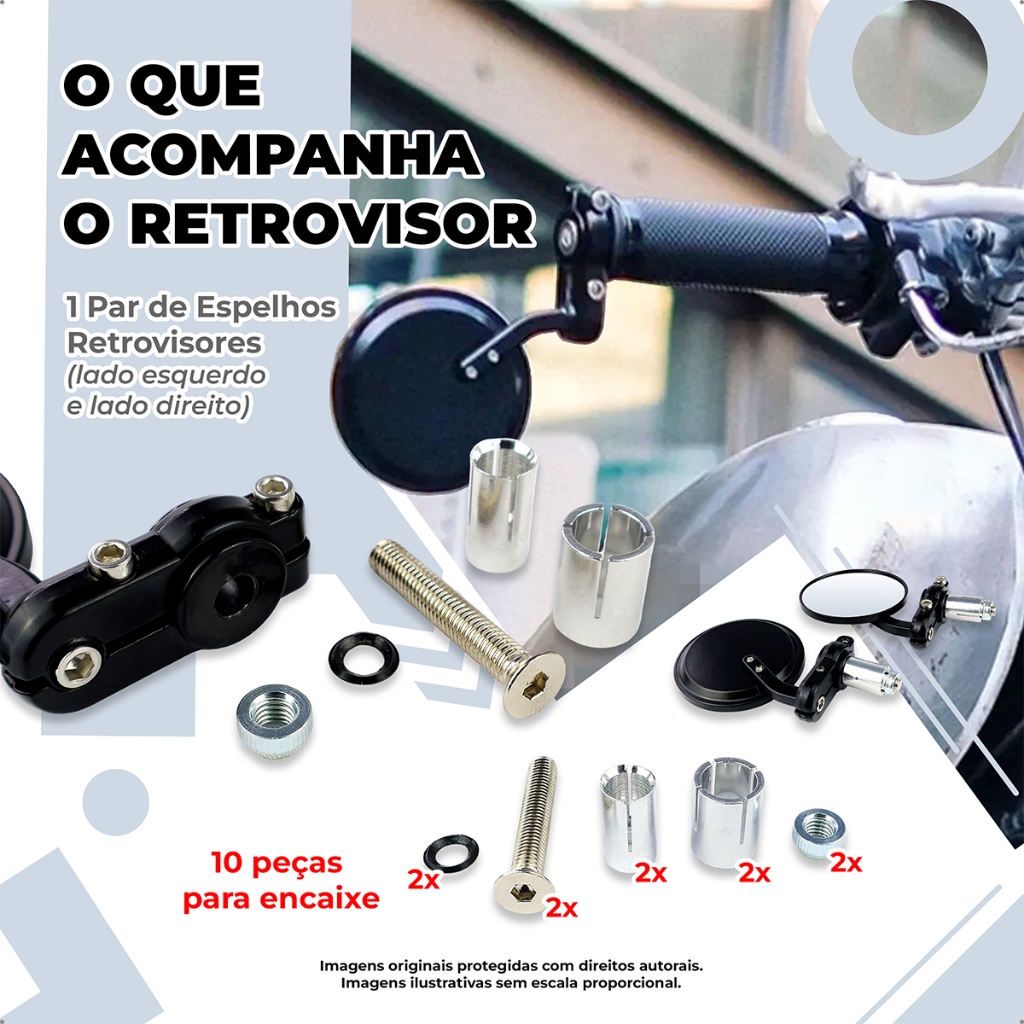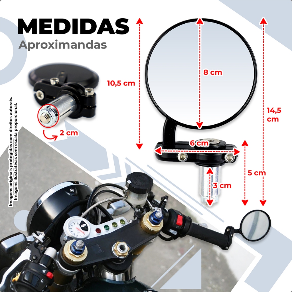 Retrovisor Moto Redondo Ponta Guidão 22mm Café Racer Esportivo Clássico Preto Par antirreflexo