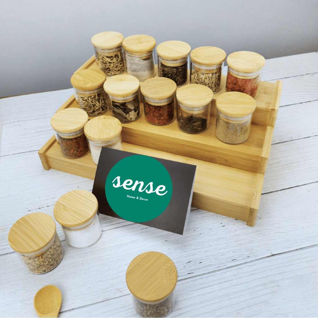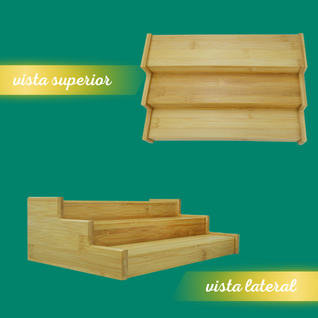 Organizador de Temperos em Escada de Bambu Porta Potes 30CM