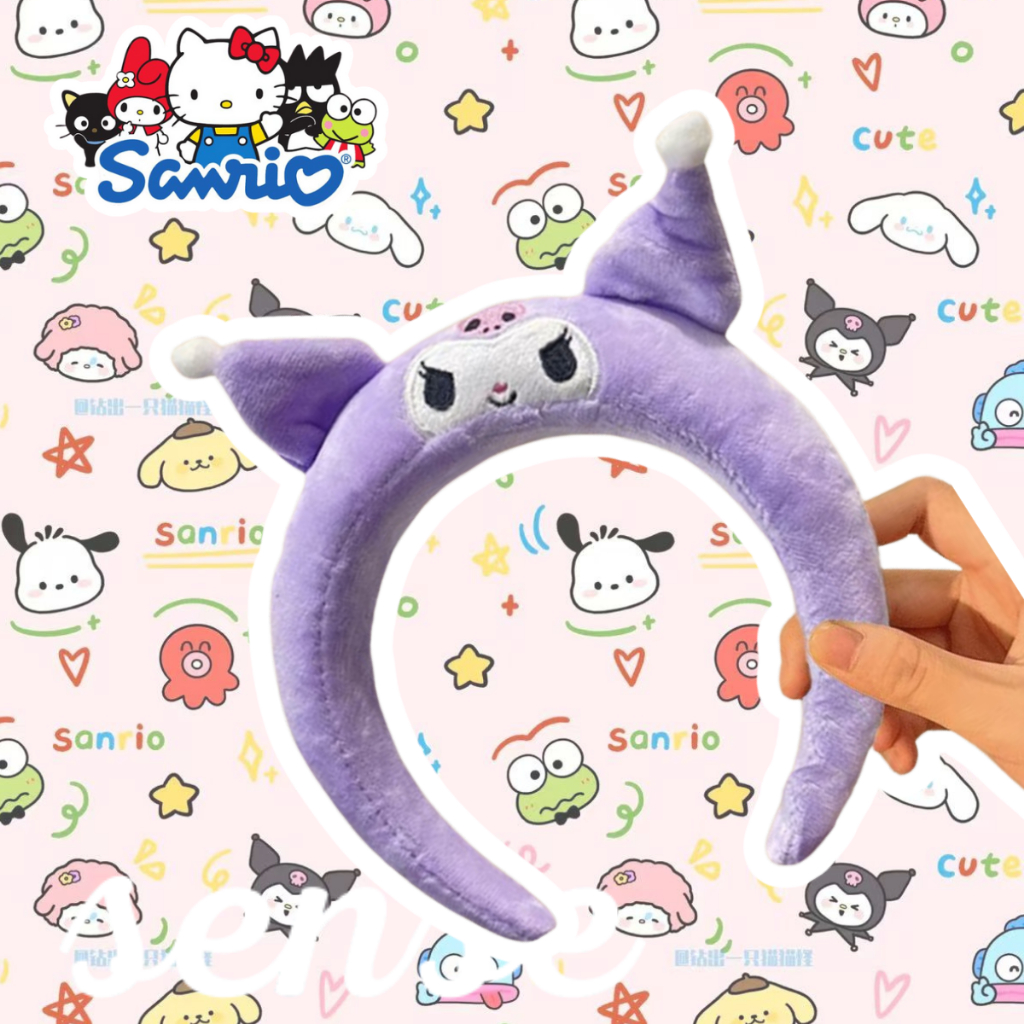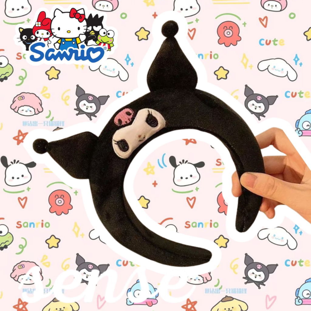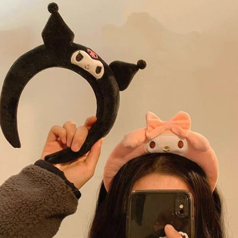 Faixa de Cabelo Lavável e Fofa Estilo Sanrio Tiara De Pelucia Kuromi/Cinnamoroll Skincare Tiara De Maquiagem