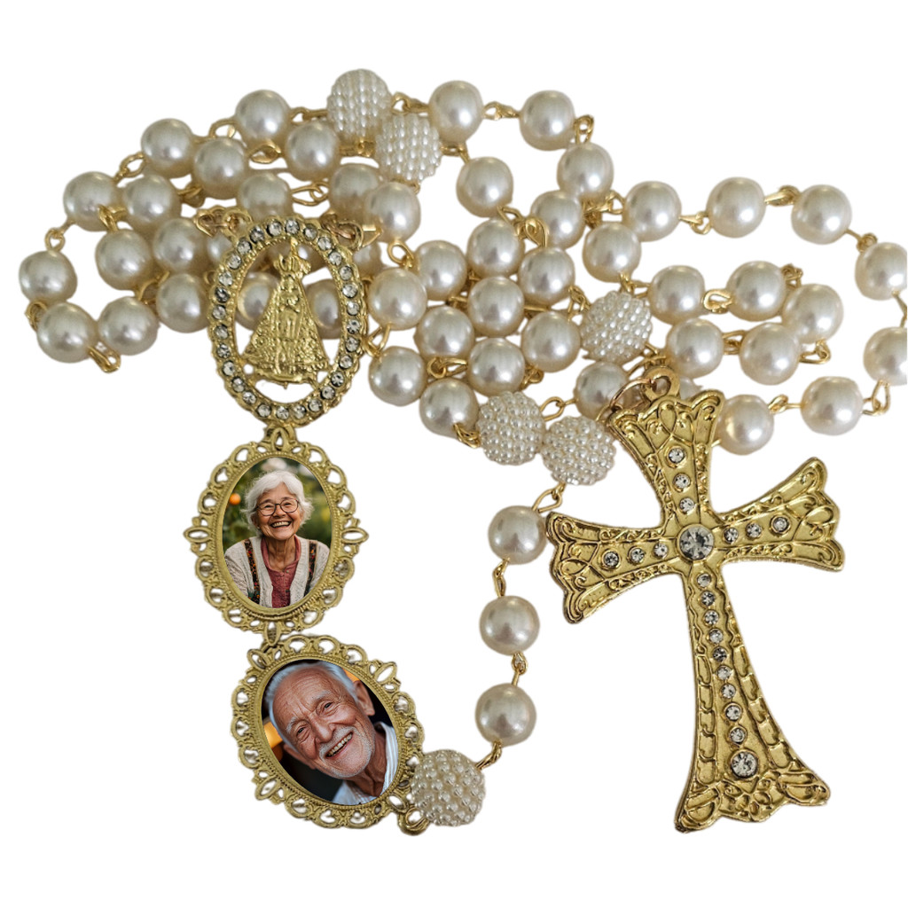 Terço Noiva Nossa Senhora Aparecida Relicários Personalizados Com Foto Casamento Homenagem Lembrança
