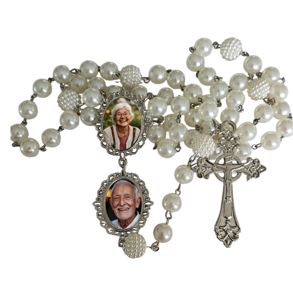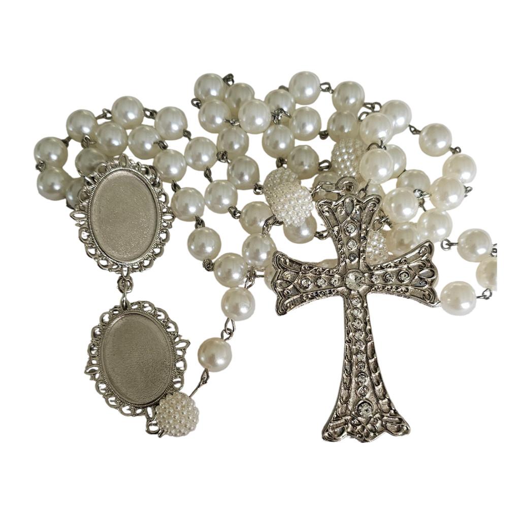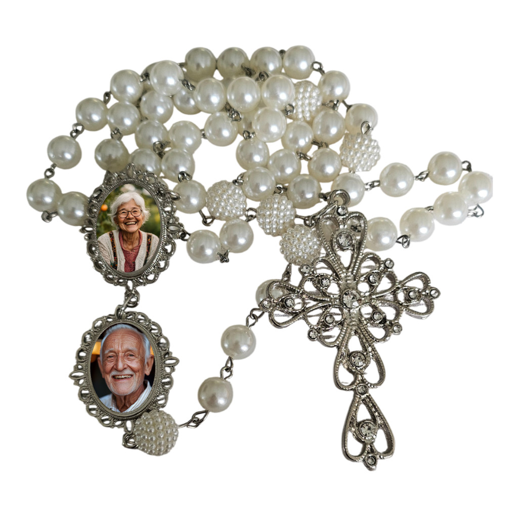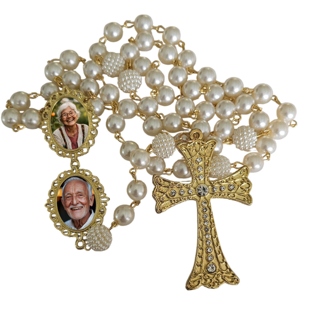 Terço Noiva Luxo Relicários Personalizados Com Foto Casamento Homenagem Presente Lembrança Afetiva