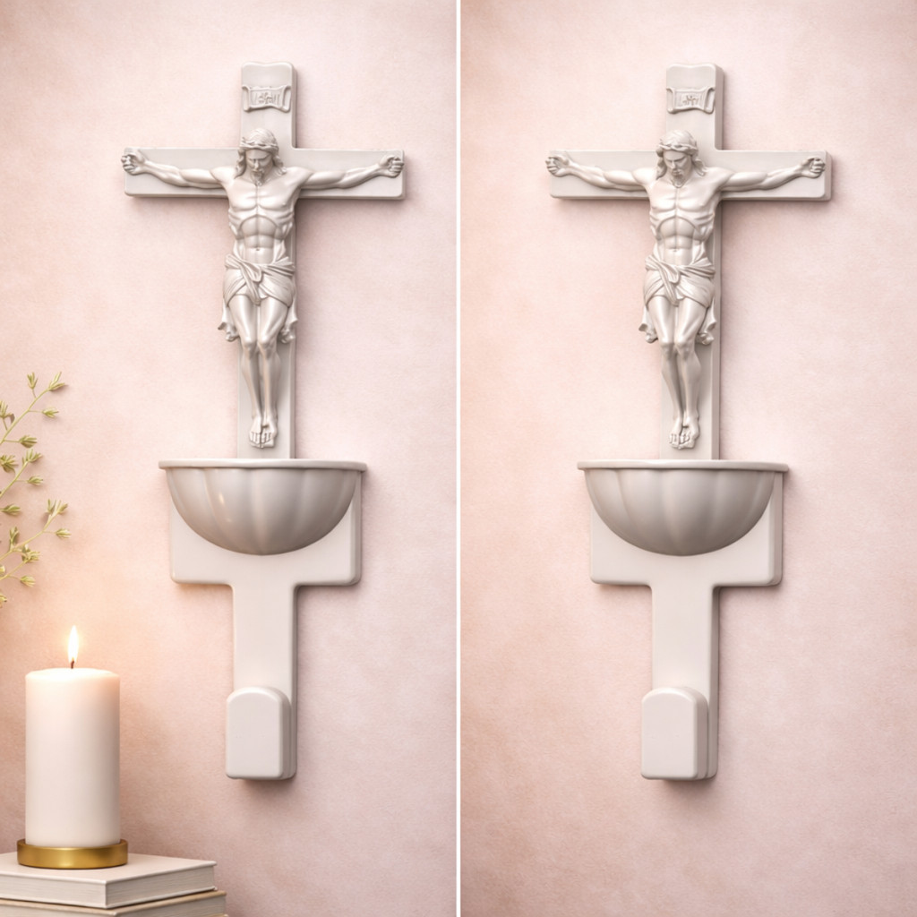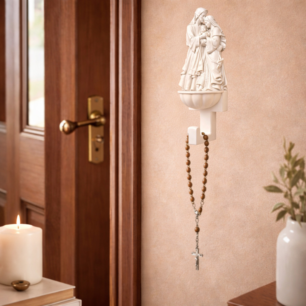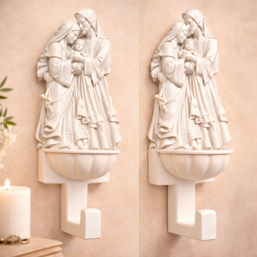 Suporte Terços Catolicos Pia Agua Benta Sagrada Familia