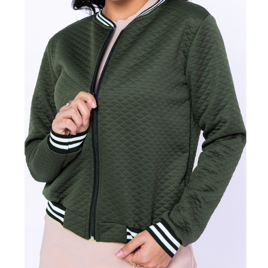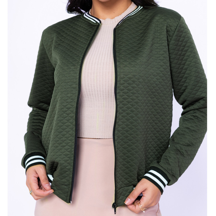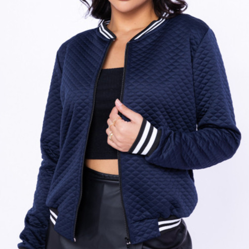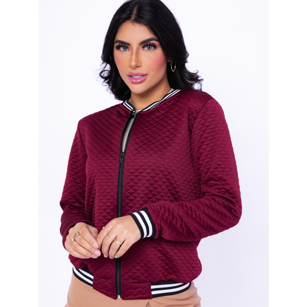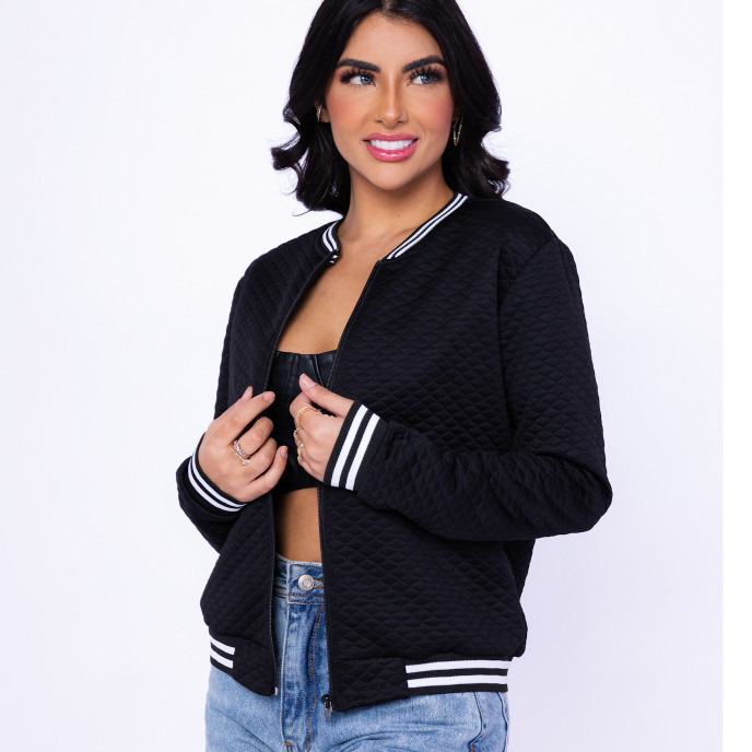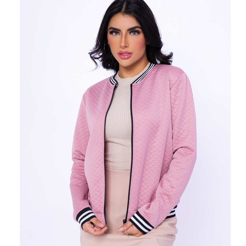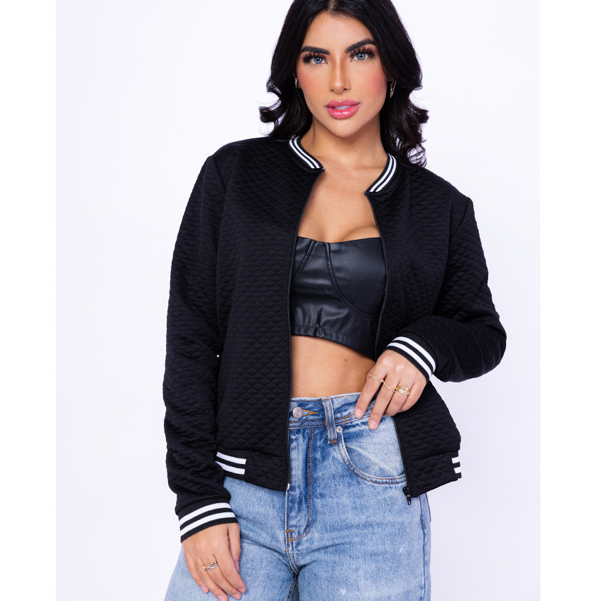 Blusa de Frio Jaqueta Bomber Feminina Jaquetinha Matelasse Com ziper Detalhes em Listra