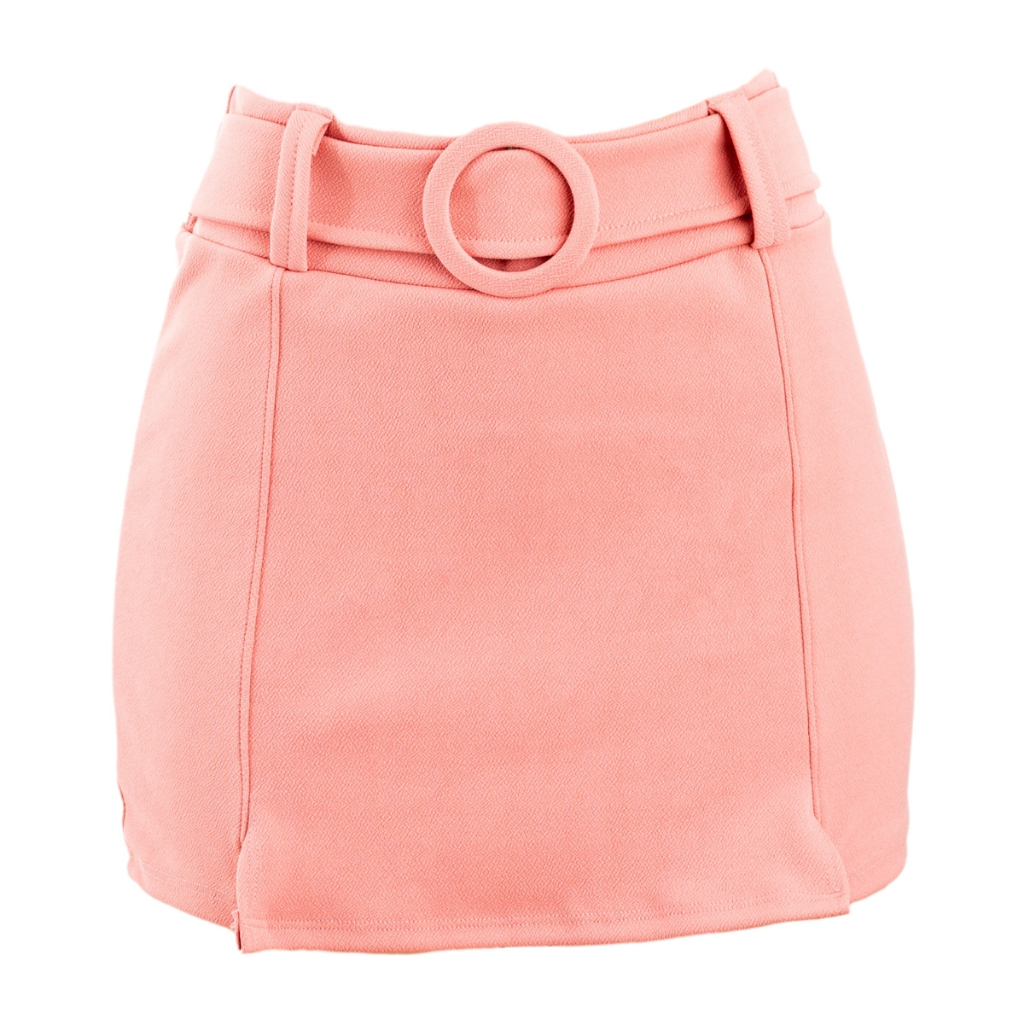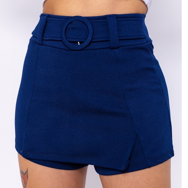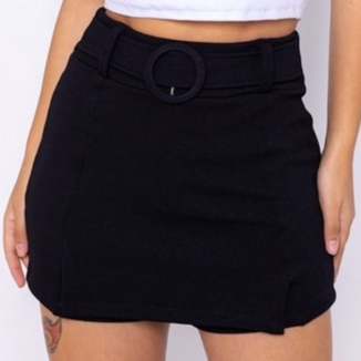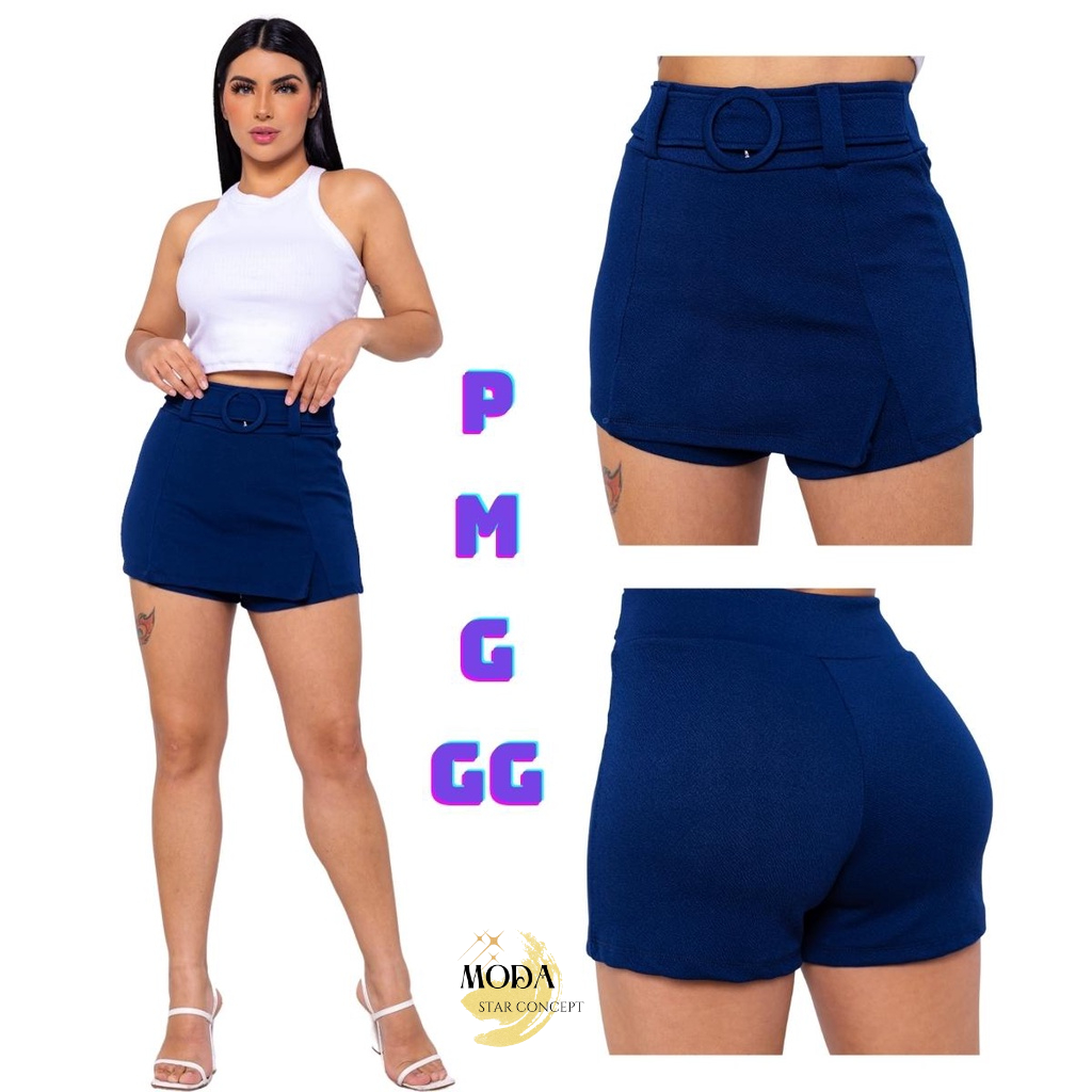 Short Saia Com Cinto Forrado Fenda Lateral Cintura Alta Curto Crepe M AO EXTRA