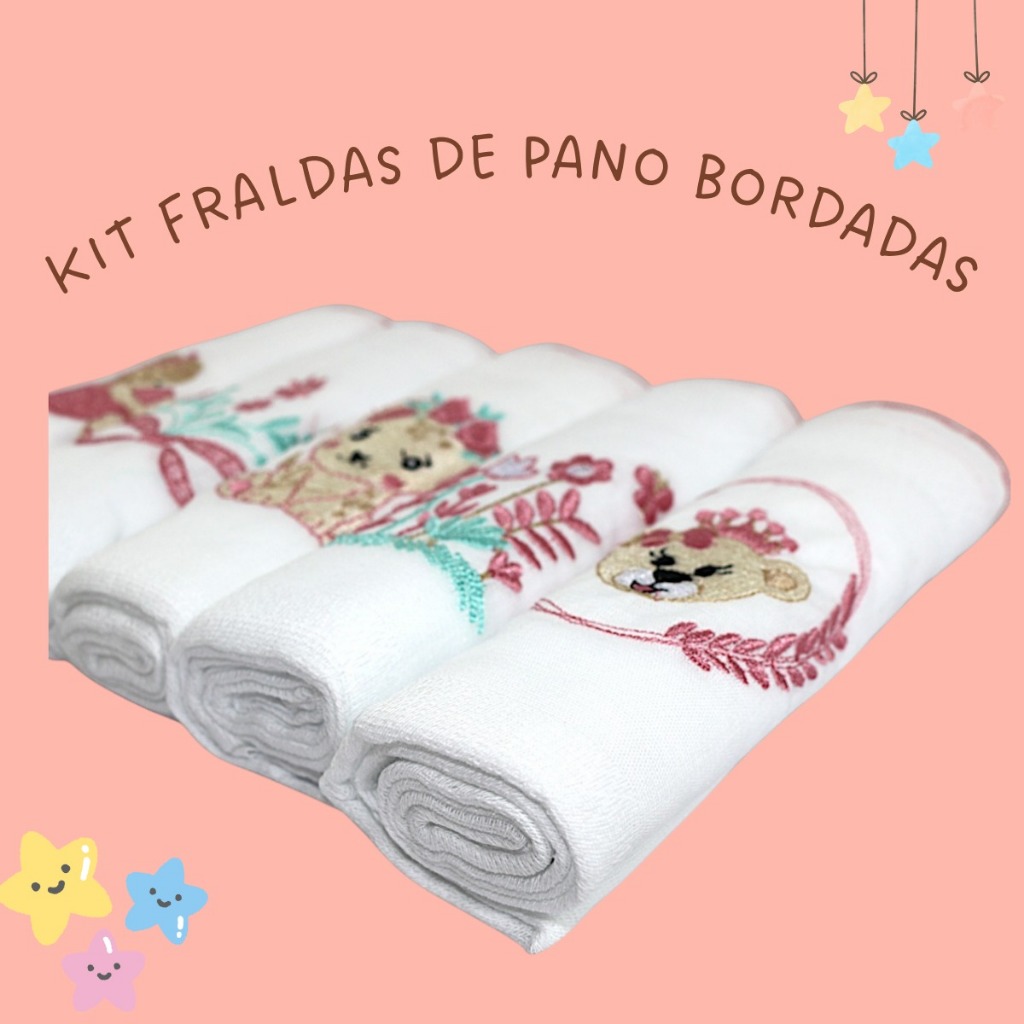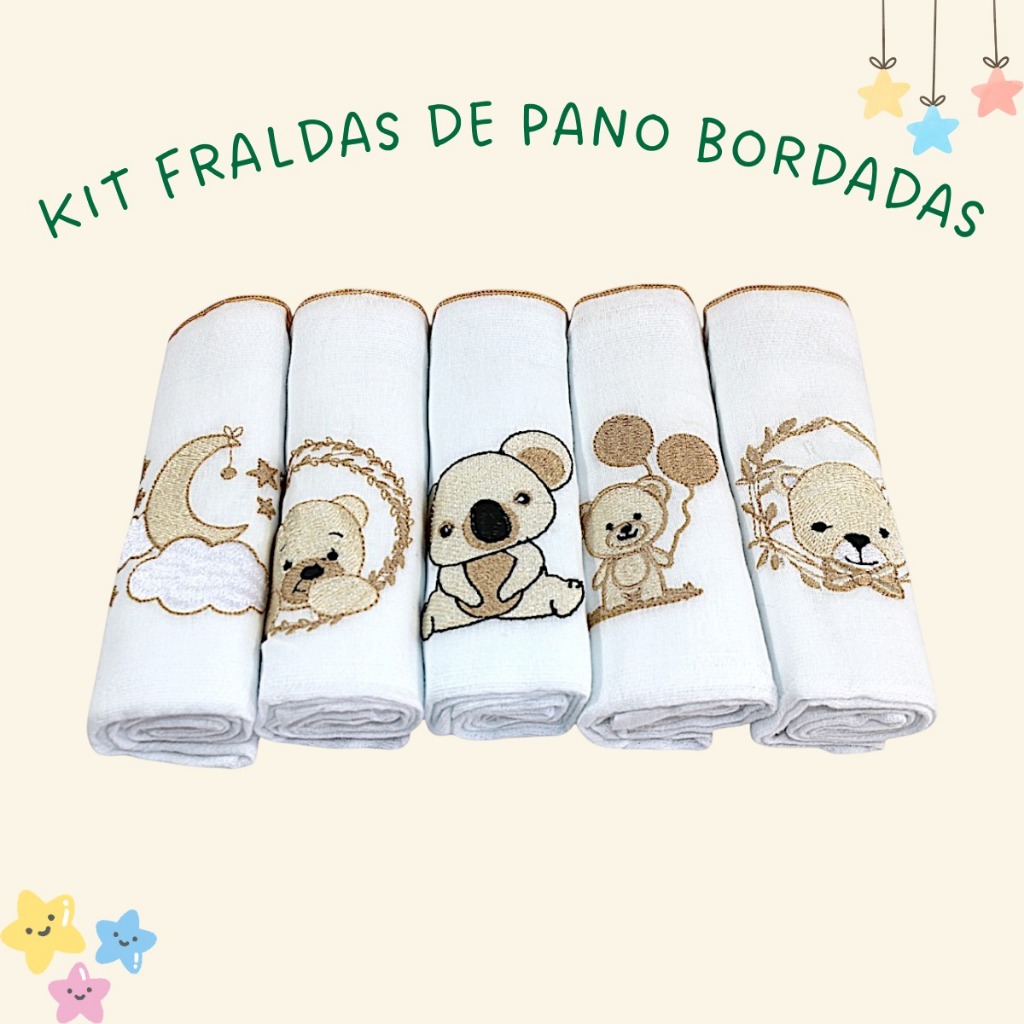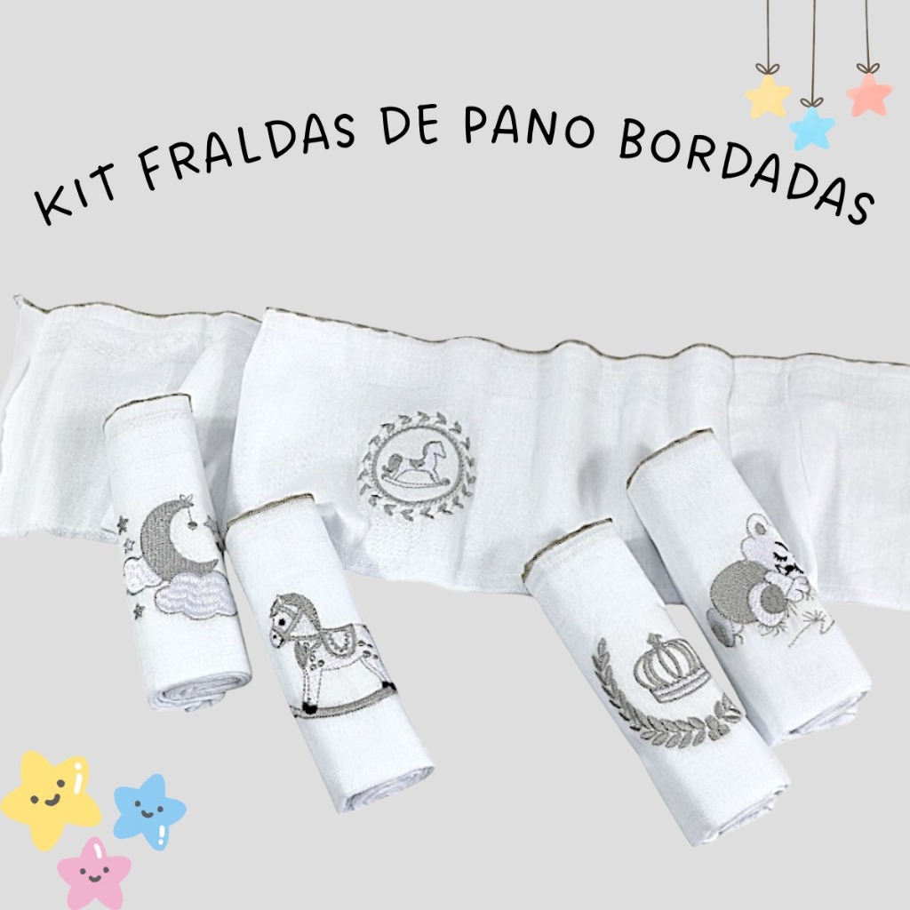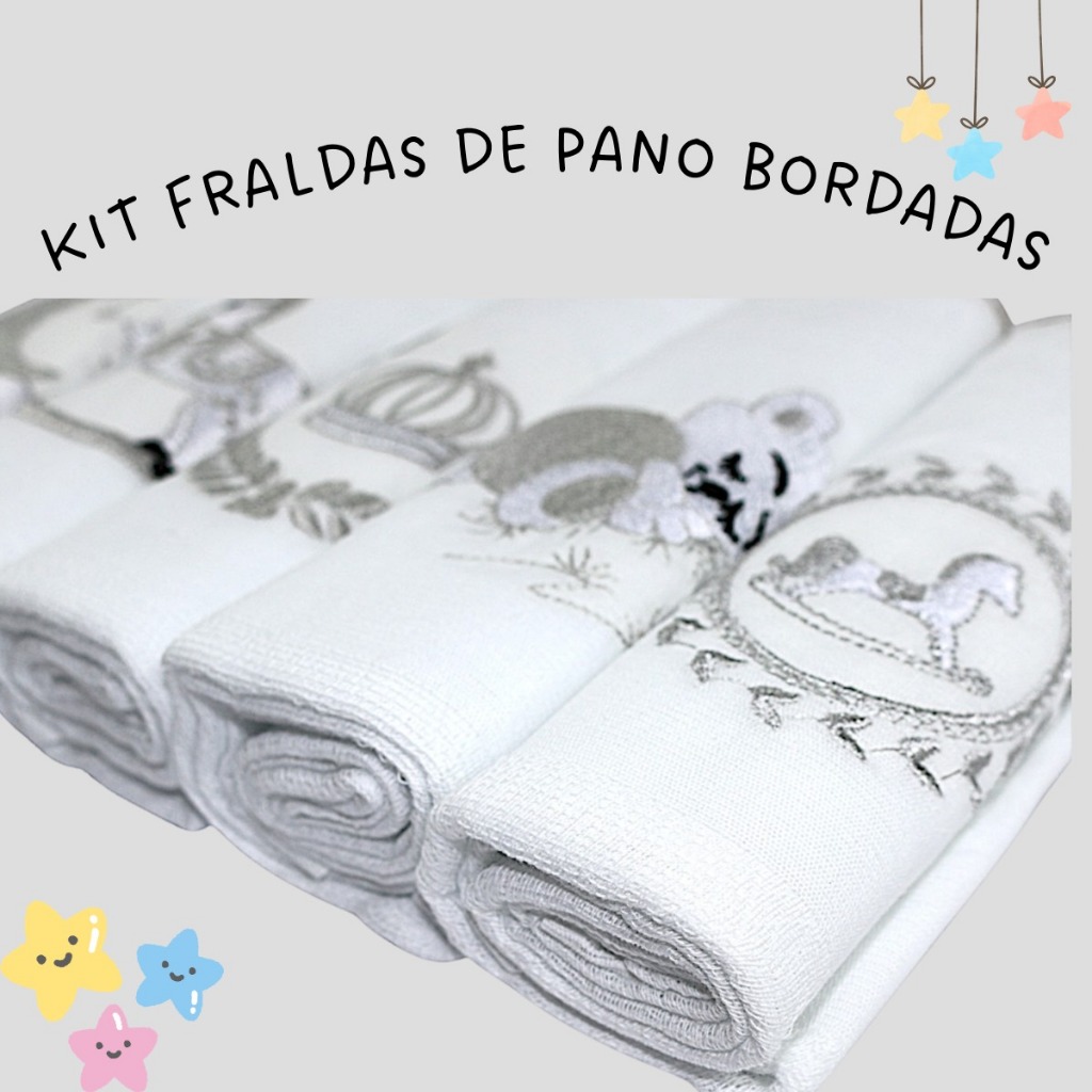 Fralda De Ombro Bordada 100% Algodão Kit Bebê Reborn Menina Menino Cores Neutras