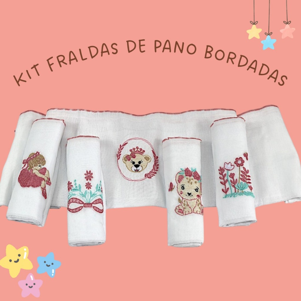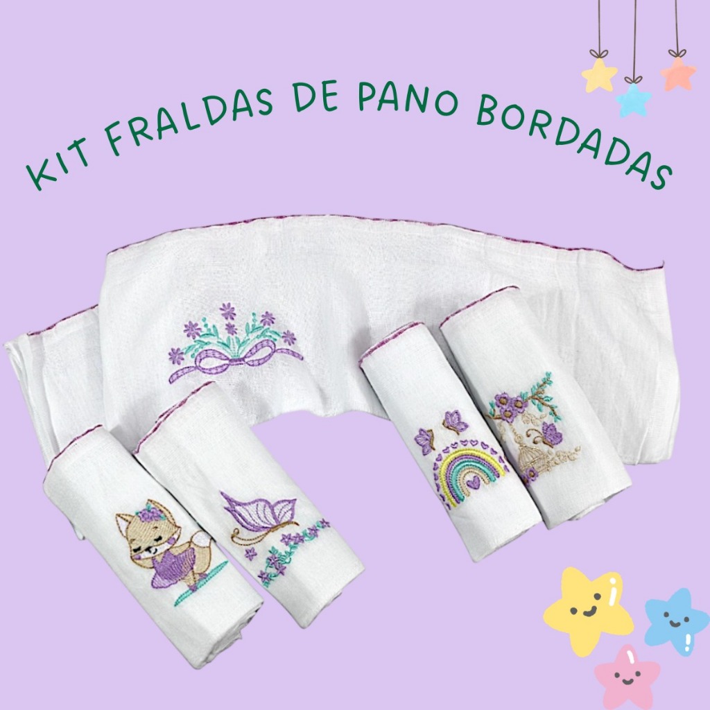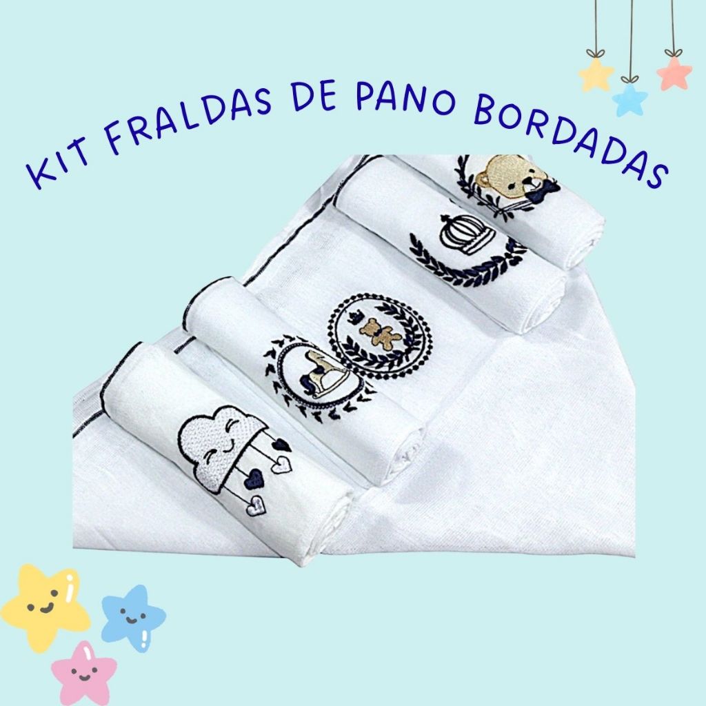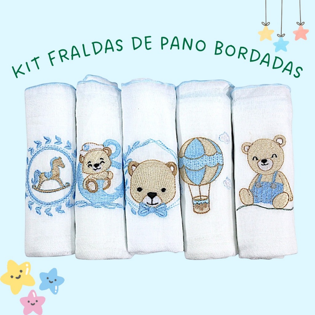 Fralda De Ombro Bordada 100% Algodão Kit Bebê Reborn Menina Menino Cores Neutras