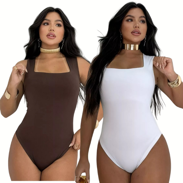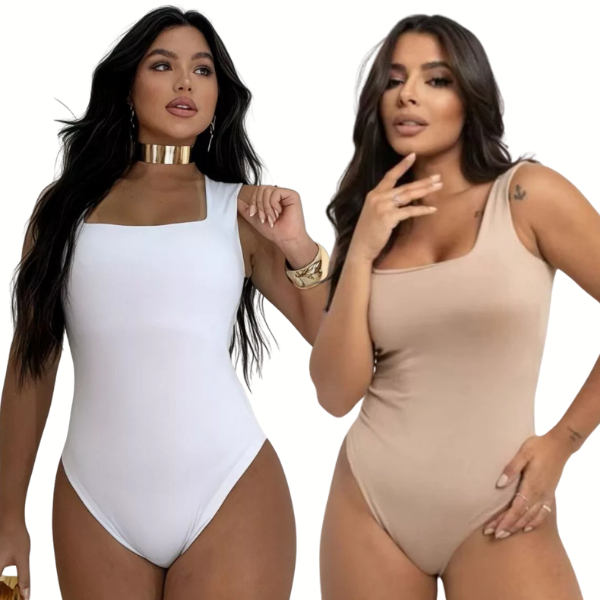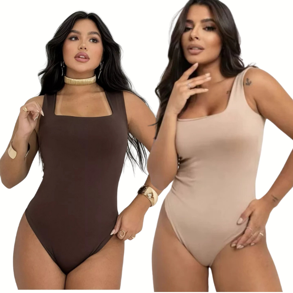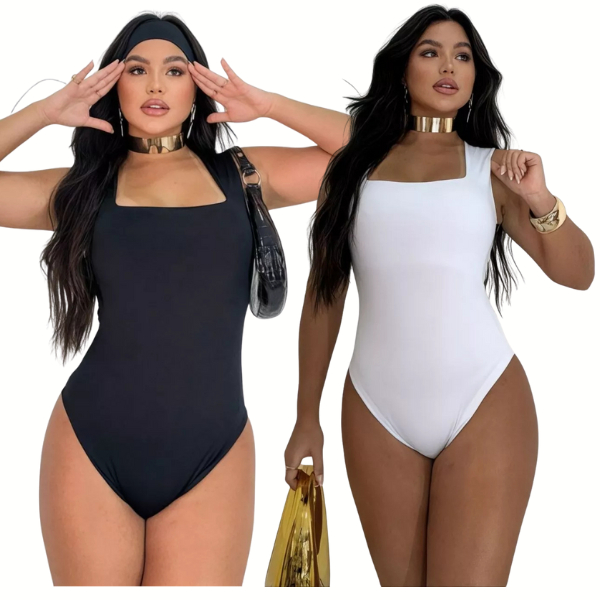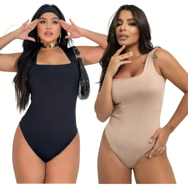 Kit 2 Body Feminino Decote Quadrado Alças Grossas Casual Elegante