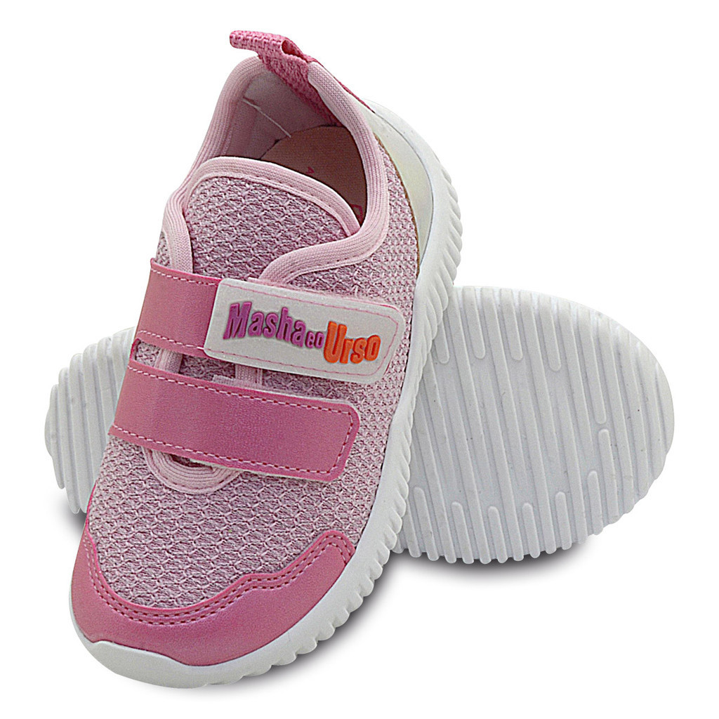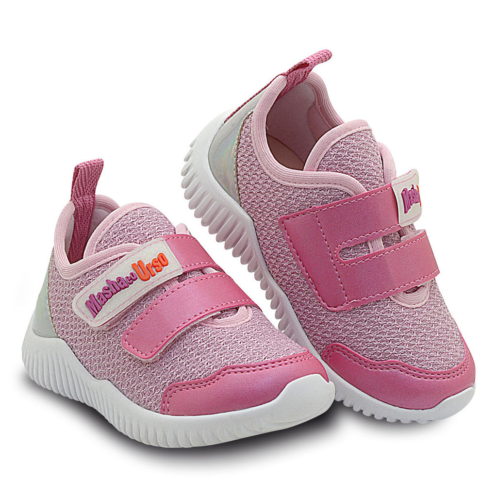 Tênis Menina Infantil Pé com Pé Masha Rosa BB/Cru Com Fechamento Velcro