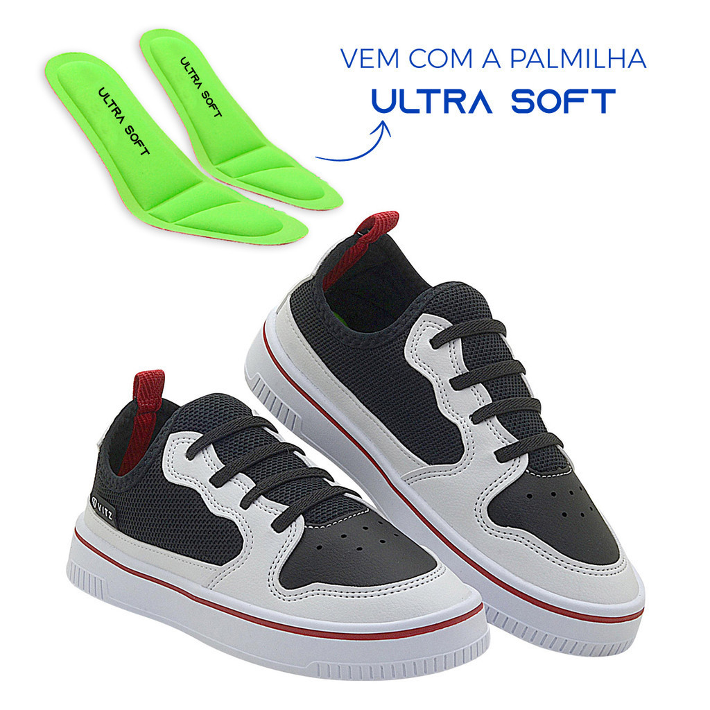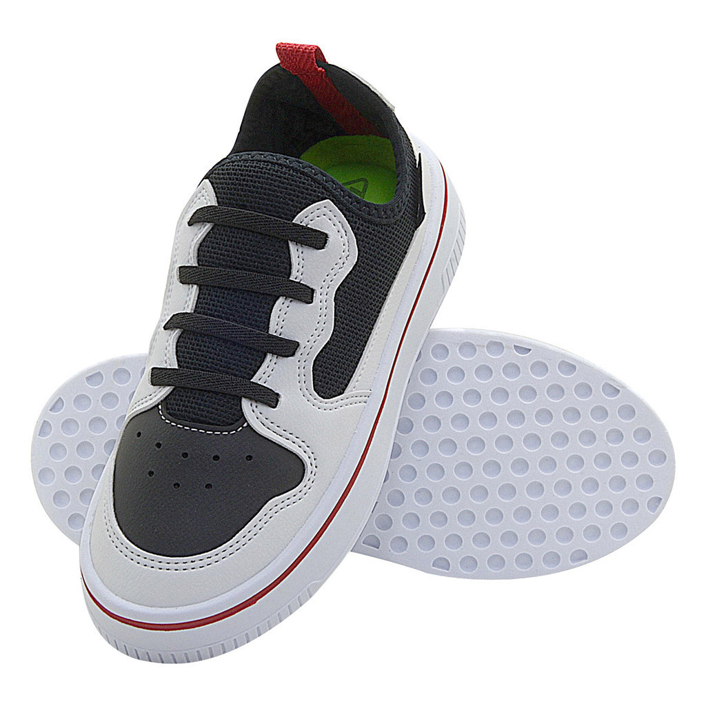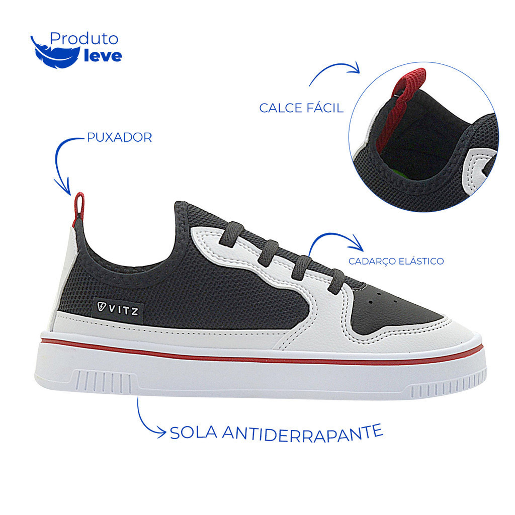 Tênis Infantil Menino Fly Vitz Preto/Branco Casual Moderno Calce Fácil
