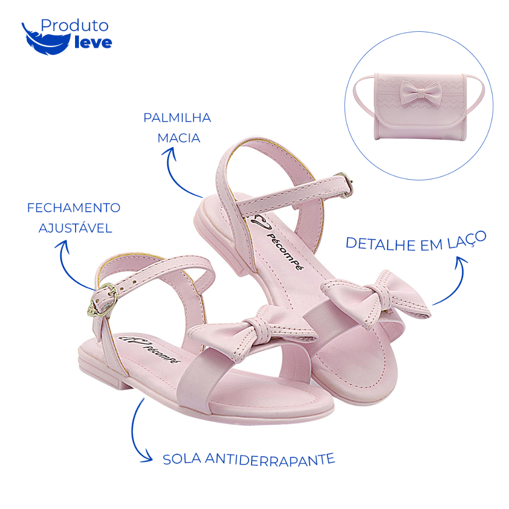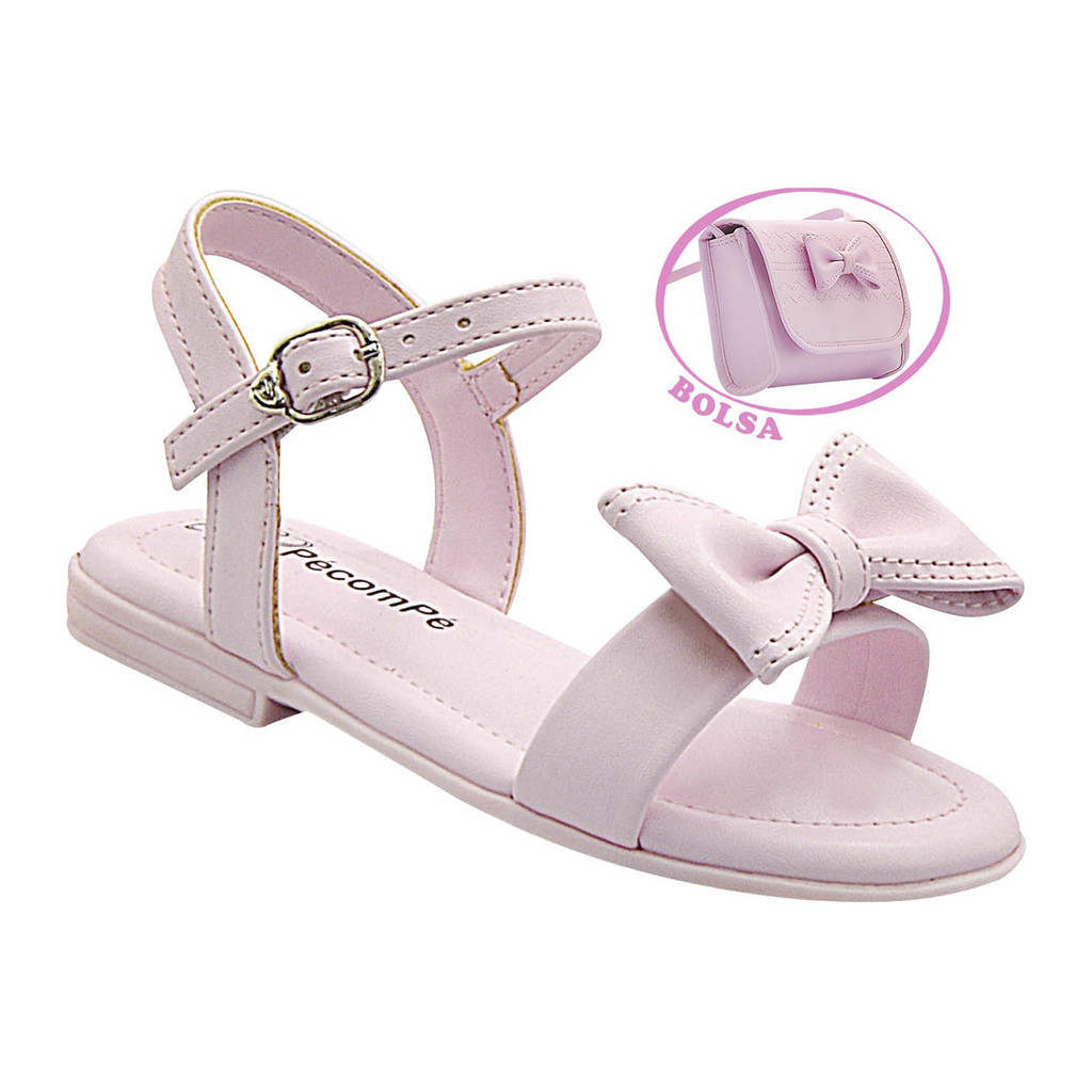 Sandália Infantil Menina Rasteirinha Feminina Com Laço e Bolsa de Brinde