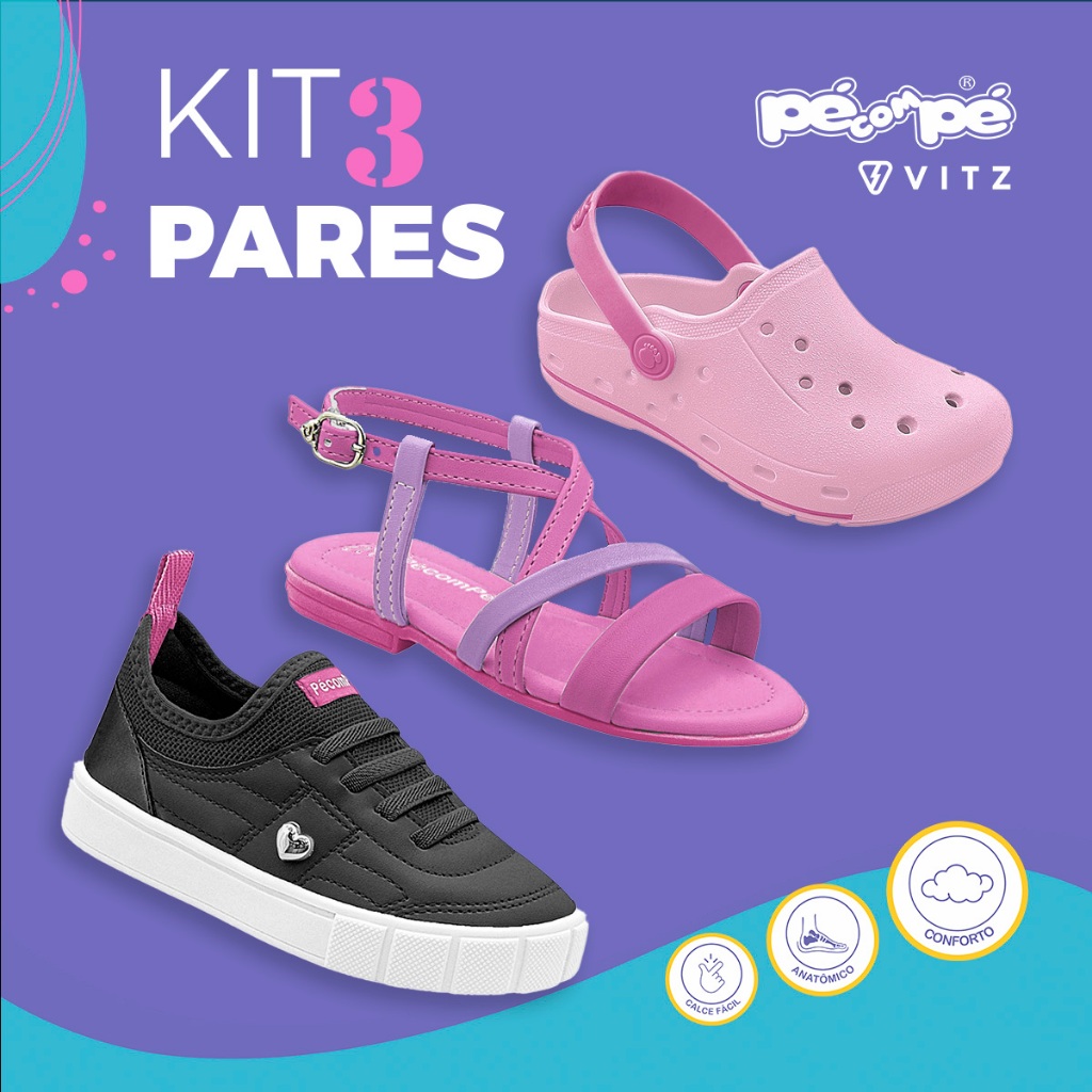 Kit Sandália Tênis Sandália Injetada Infantil Feminino Casual Menina Lançamento
