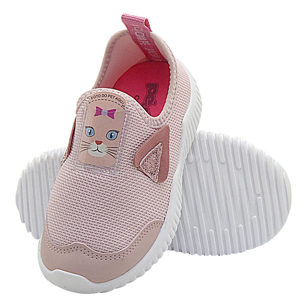 Tênis Infantil Menina Gatinha Fofo Calce fácil Confortável e Leve para Escola e Dia a Dia