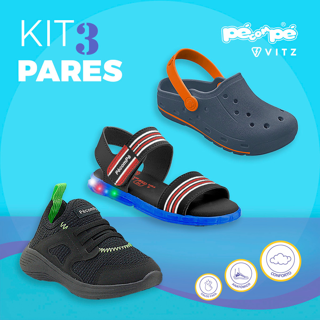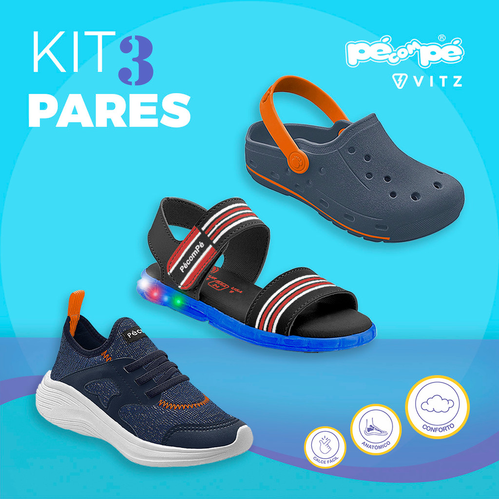 Kit Tênis Sandália Injetada Papete Infantil Masculino Casual Menino