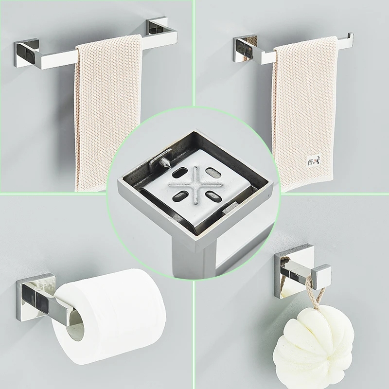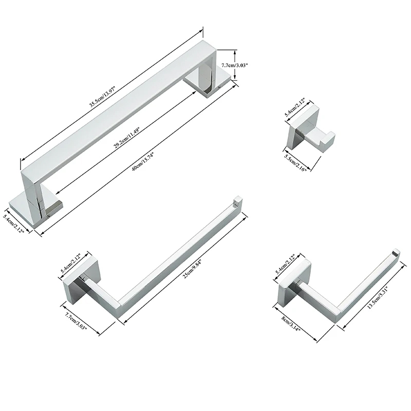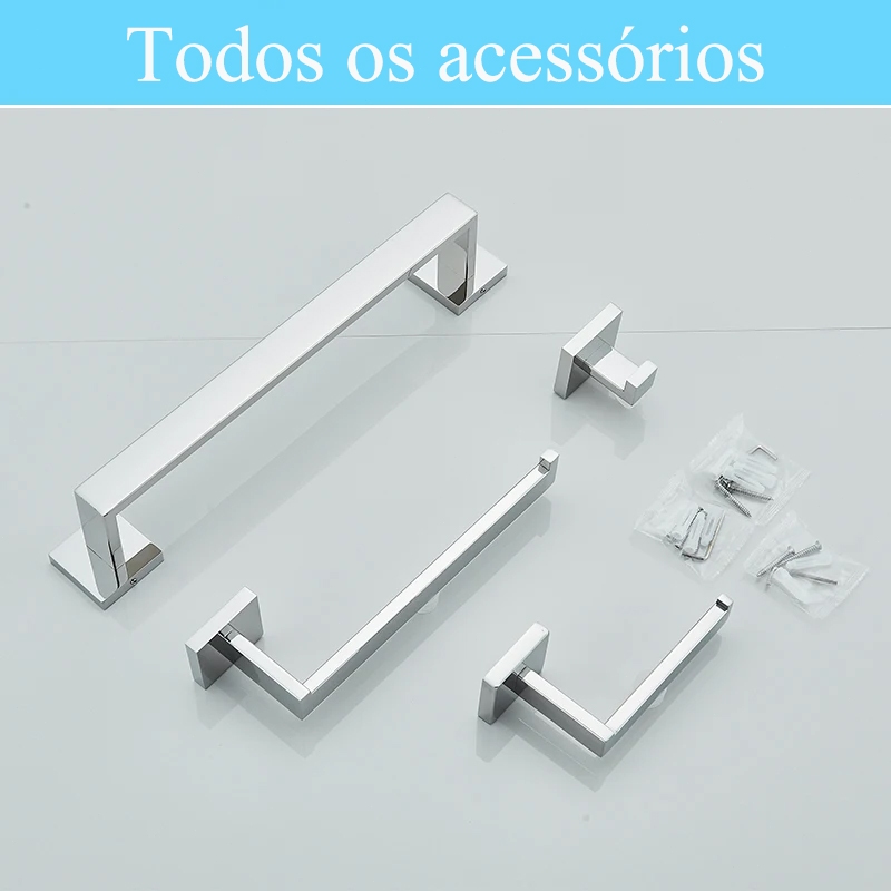 Kit De Acessórios Para Banheiro 4 Peças Chrome 40Cm/57Cm Furação Inoxidável