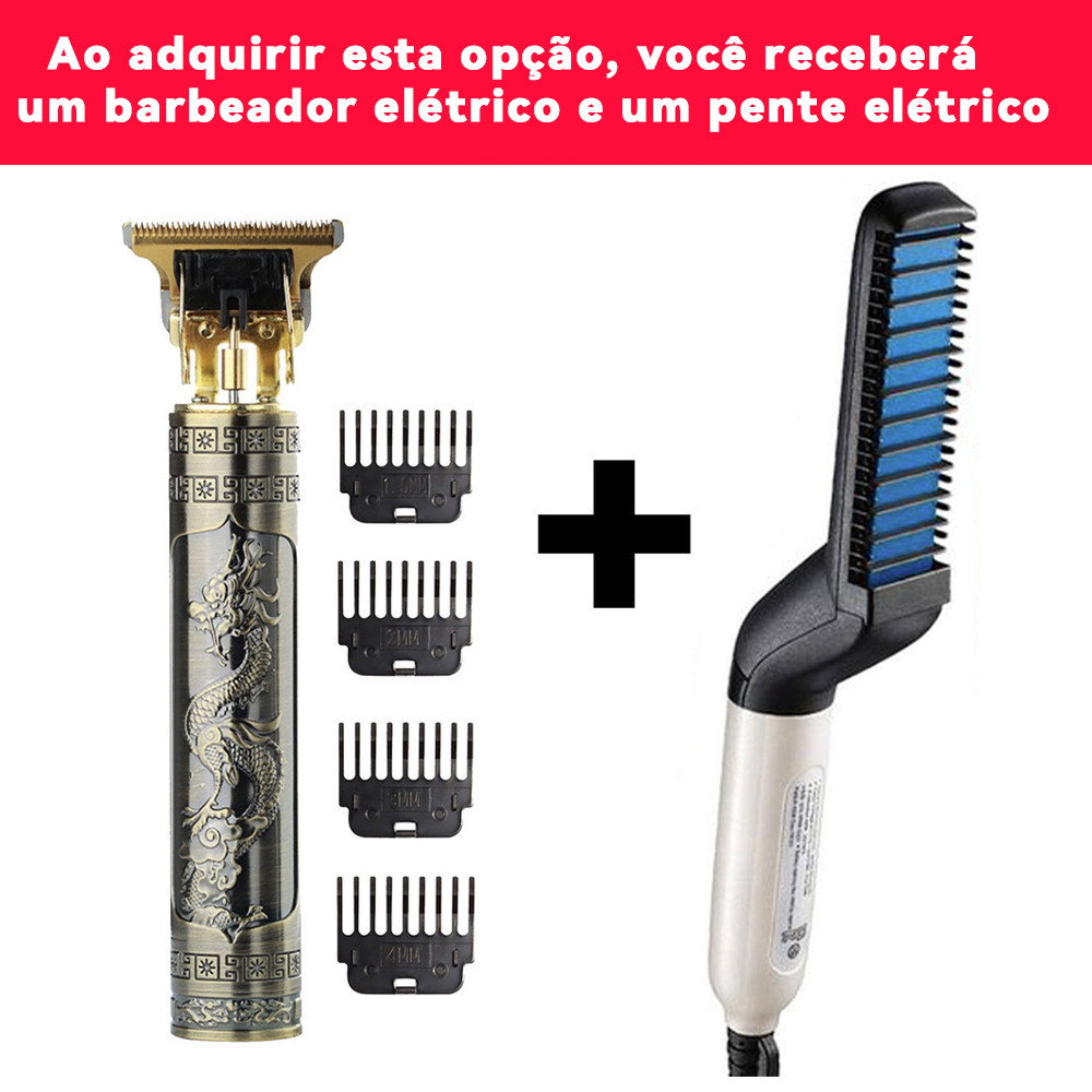 KIT 2 Escova Barba Chapinha Modelador Pente e Máquina De Cortar Cabelo Para Barba-Kit cuidados masculinos