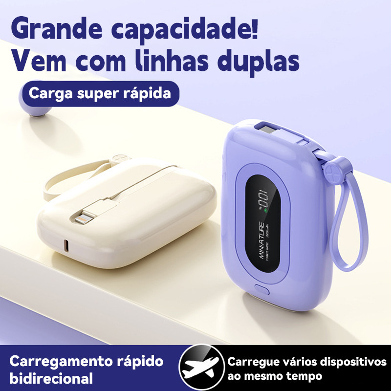 Carrega super rápido power bank de 12.000 mAh com USB universal‌, compacto, portátil e com exibidor numérico.