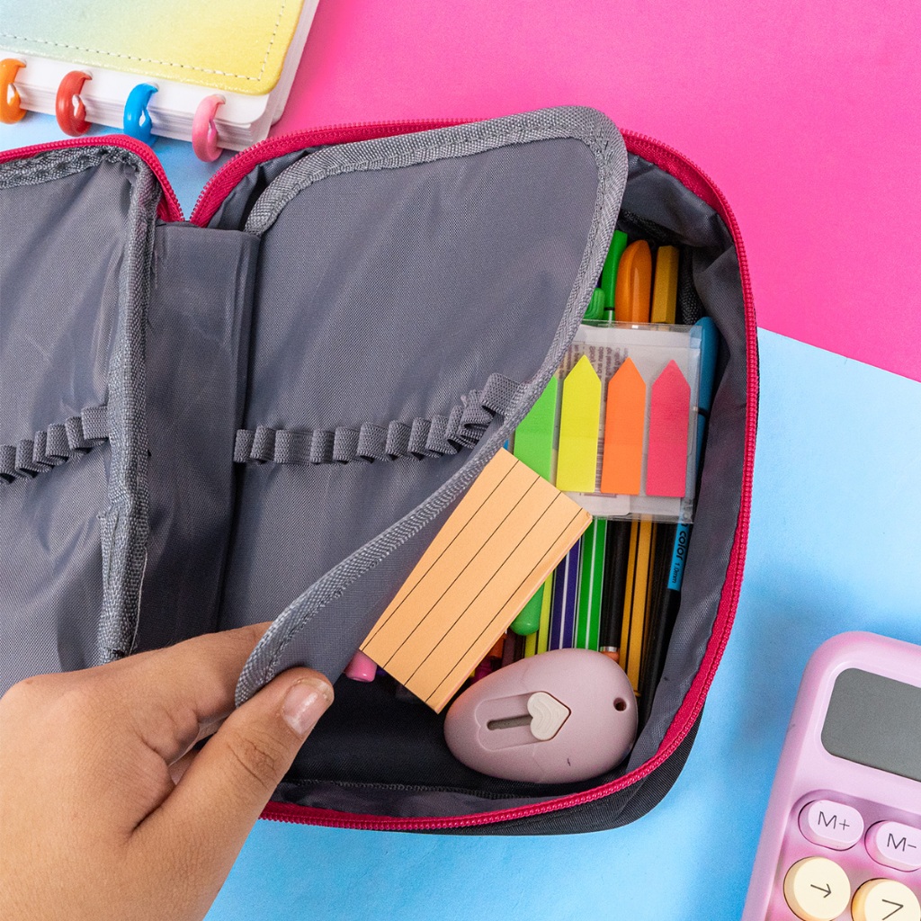 Estojo Organizador Escolar Grande Jumbo Masculino Feminino Box Liso Com Divisórias Elásticos